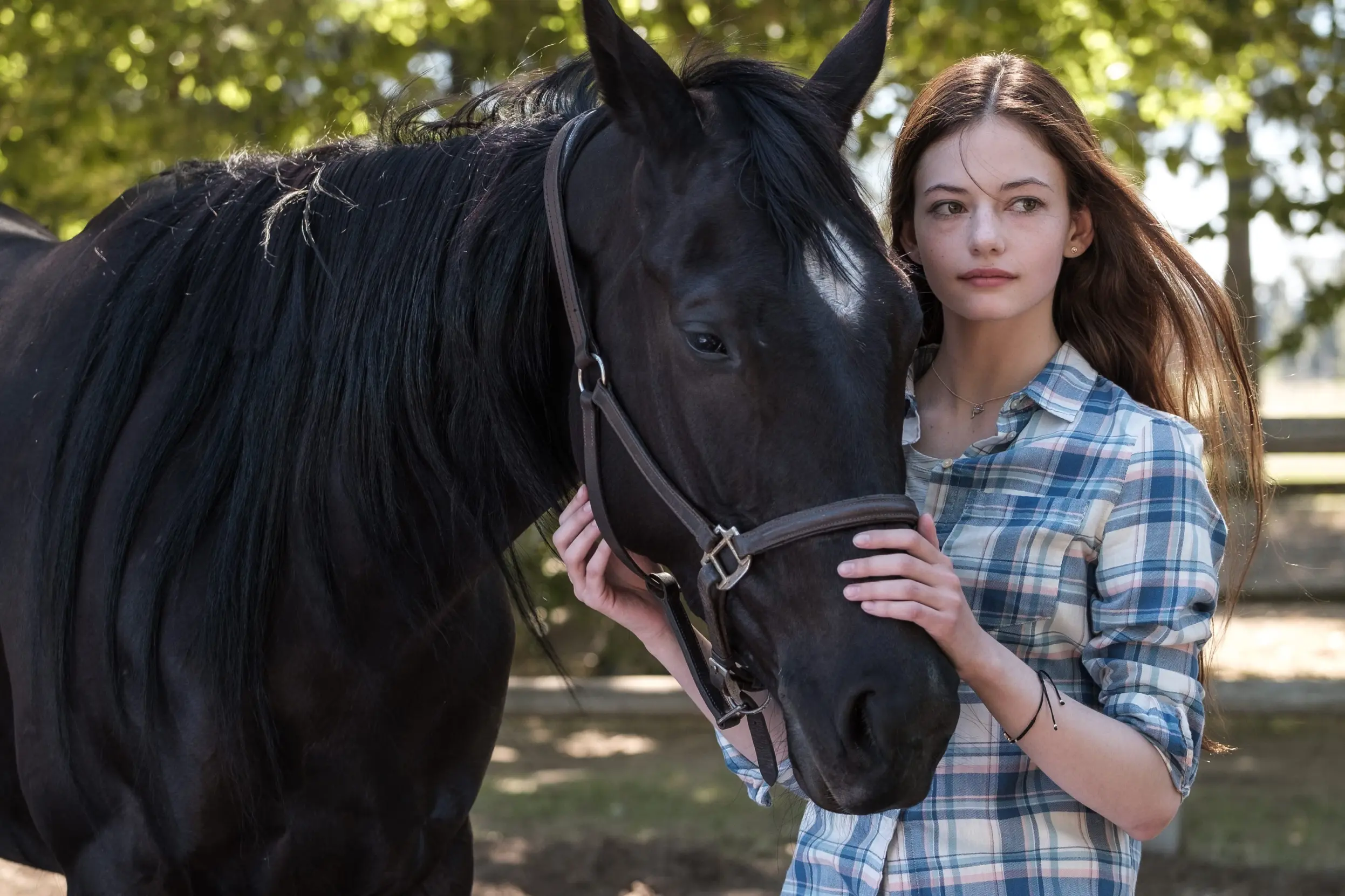 Настоящая классика кинематографа от Роберта Редфорда, которая заслуженно входит в списки лучших фильмов про лошадей и конный спорт. История рассказывает о девочке-подростке Грейс, роль которой исполнила юная Скарлетт Йоханссон: после серьезной аварии она теряет ногу, а ее скакун Пилигрим переживает травму и становится пугливым и агрессивным. Мать Грейс, не видя выхода, отвозит дочь и лошадь в отдаленную часть Монтаны к Тому Букеру, который словно умеет разговаривать с лошадьми. Постепенно Том помогает Пилигриму преодолеть страхи, а Грейс и ее маме Энни — восстановить отношения.
