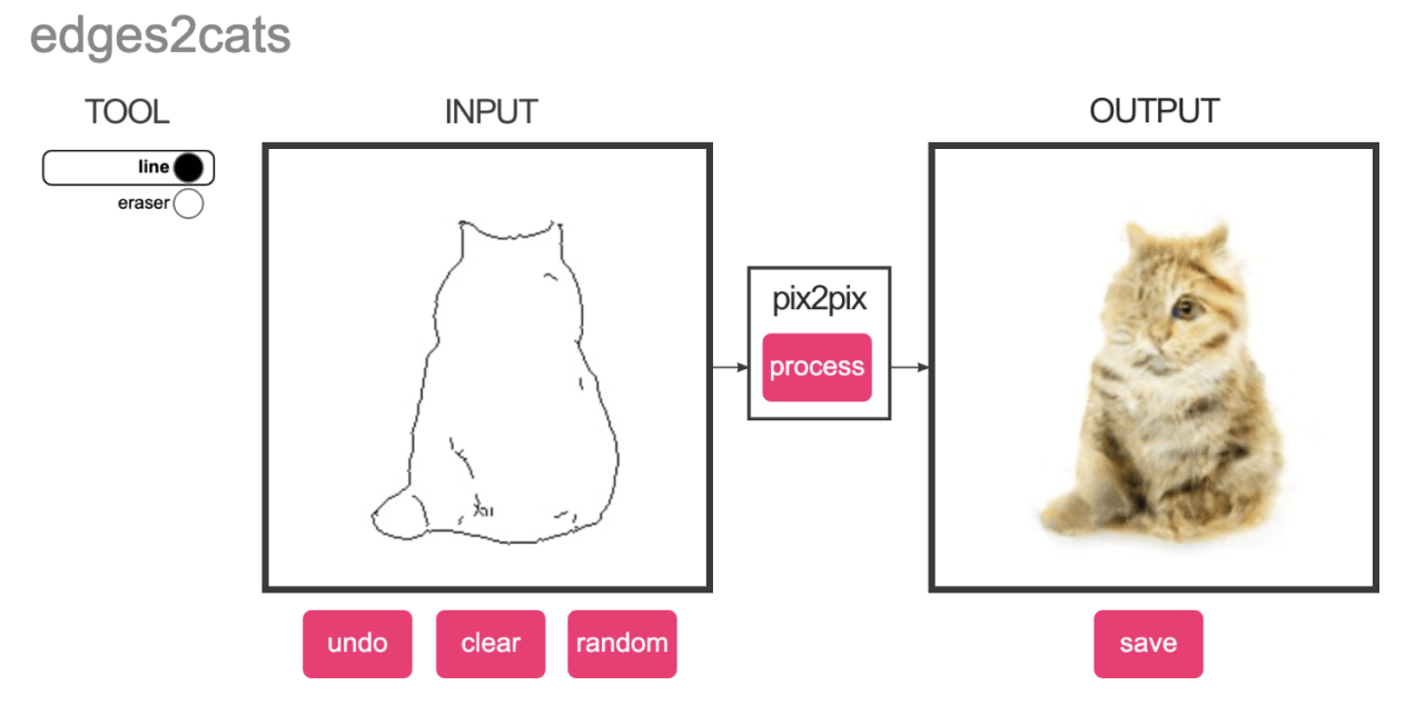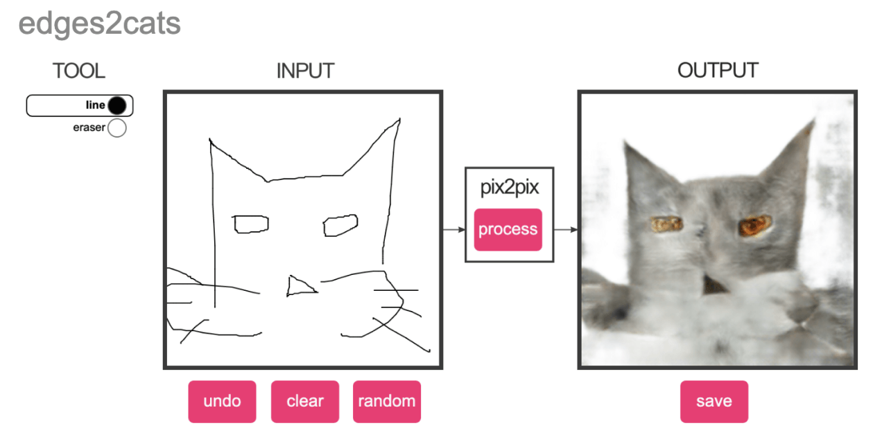 Еще одна забава с пушистыми питомцами. Нейросеть может превратить любую каракулю в кота. И да — абсолютно любую. Так что результаты у вас могут получаться либо смешными, либо ужасающими. Алгоритм неплохо распознает, где у кота глаза (даже если их гораздо больше двух) и где нос. Может спокойно нарисовать лапы и хвост.
