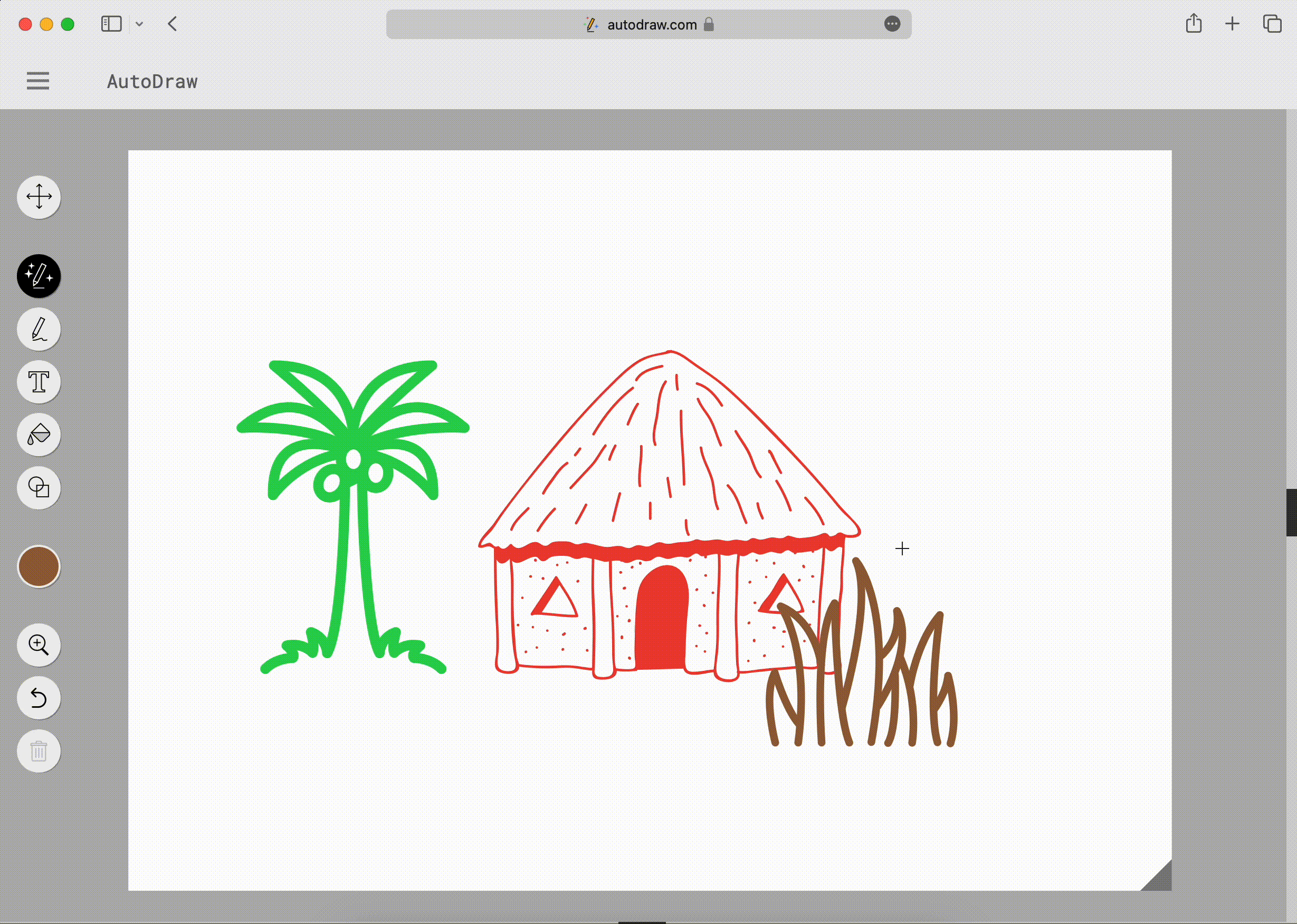 Почему такой прекрасный инструмент находится в категории «забавных нейросетей», а не «полезных»? Все просто, как бы вы ни старались, у вас вряд ли получится что-то, кроме детского рисунка с домиками, солнышком и милыми деревьями. Не сомневаемся, что найдутся умельцы, создавшие шедевр. Но творческая свобода в AutoDraw явно ограничена.