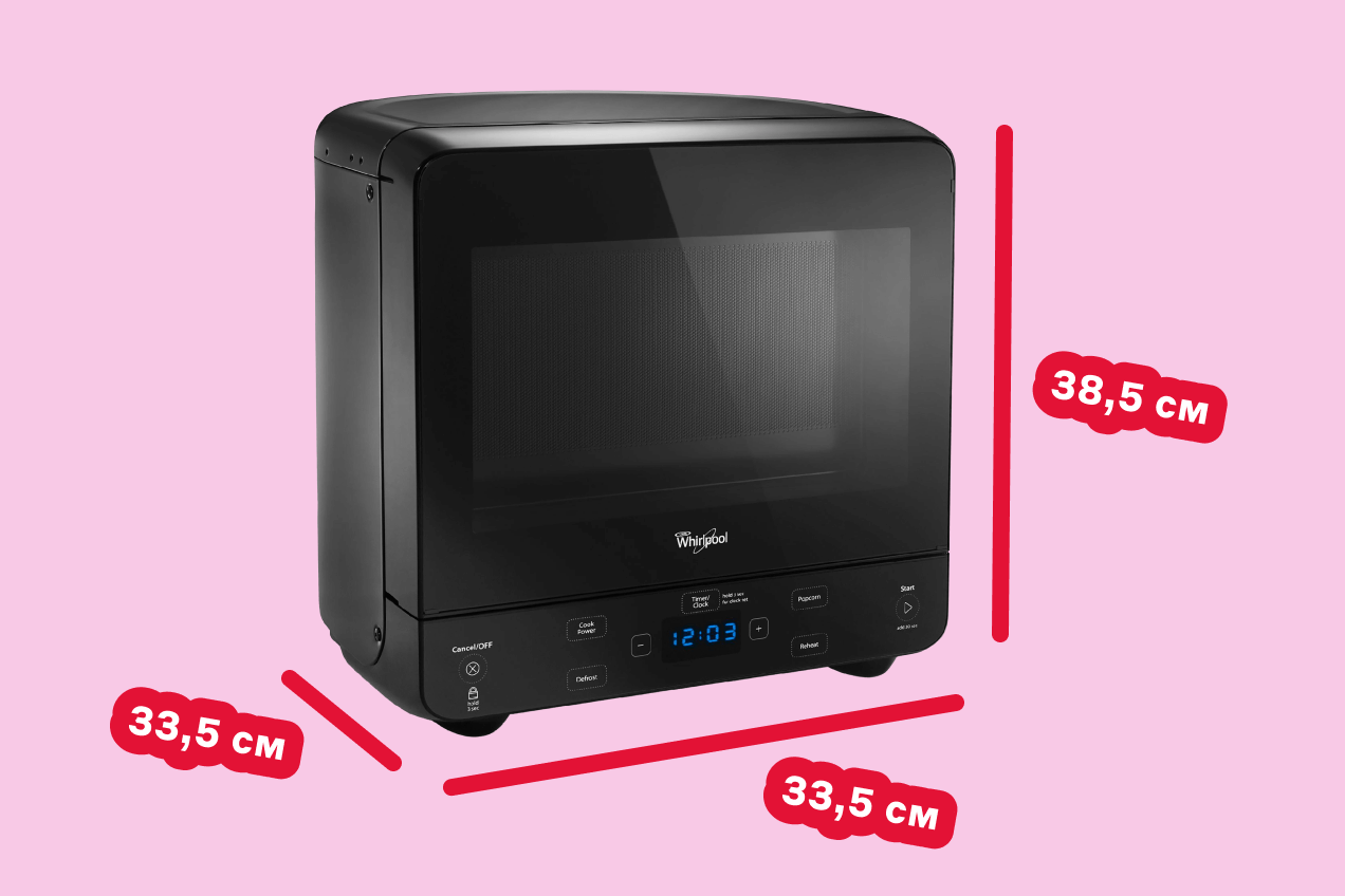 А вот, возможно, одна из самых маленьких в мире микроволновок произведена компанией Whirlpool. Необычная конструкция и габариты (33,5×35×38,5 см) позволяют уместить ее в прямом смысле в любом углу, что может быть отличным решением в том числе для студенческого общежития или коливинга.