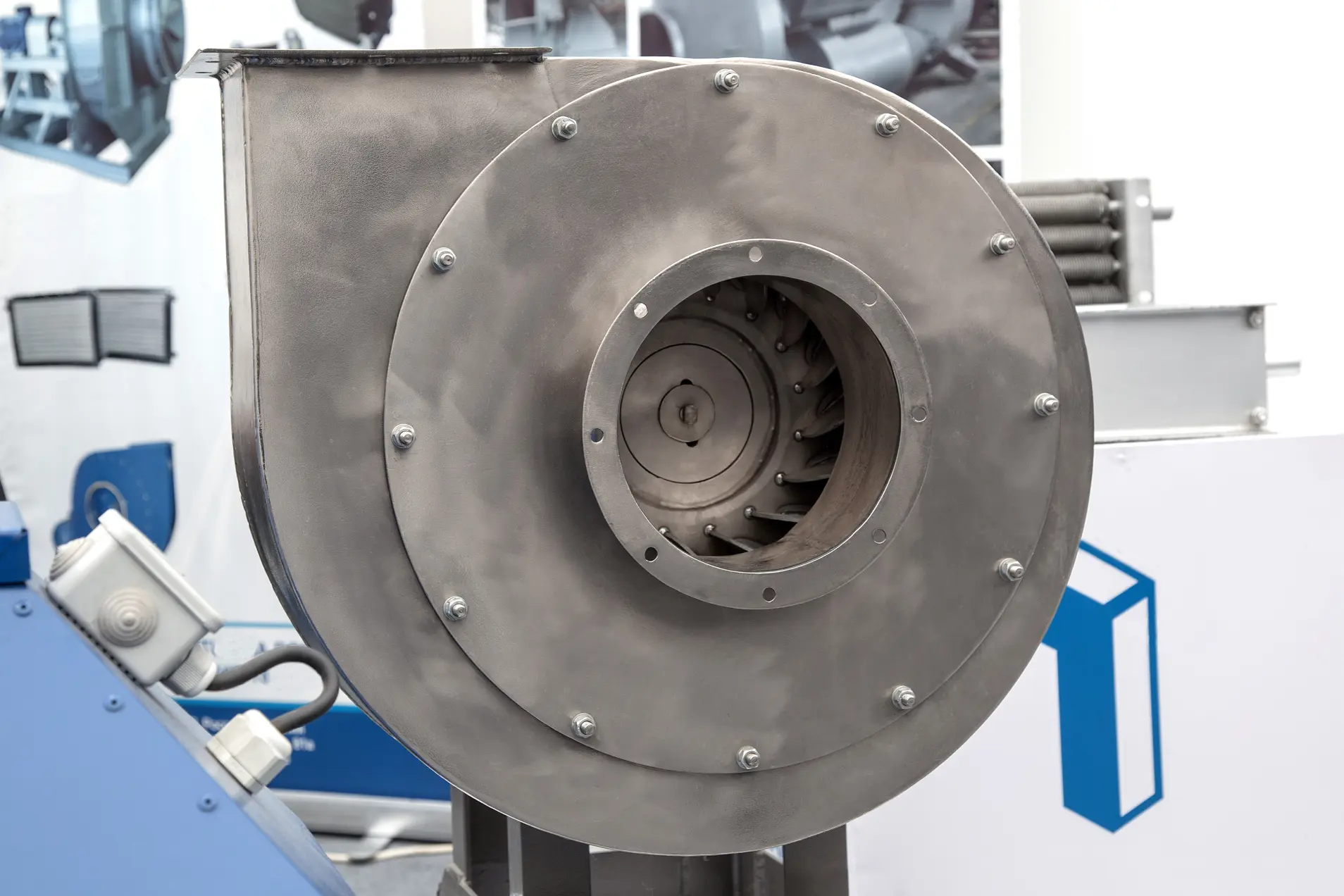 Радиальные вентиляторы всасывают воздух через центральное отверстие и выбрасывают его под углом 90 градусов. Вы точно такие видели, но не в квартирах, а скорее в больших промышленных помещениях, где необходима постоянная циркуляция воздуха.