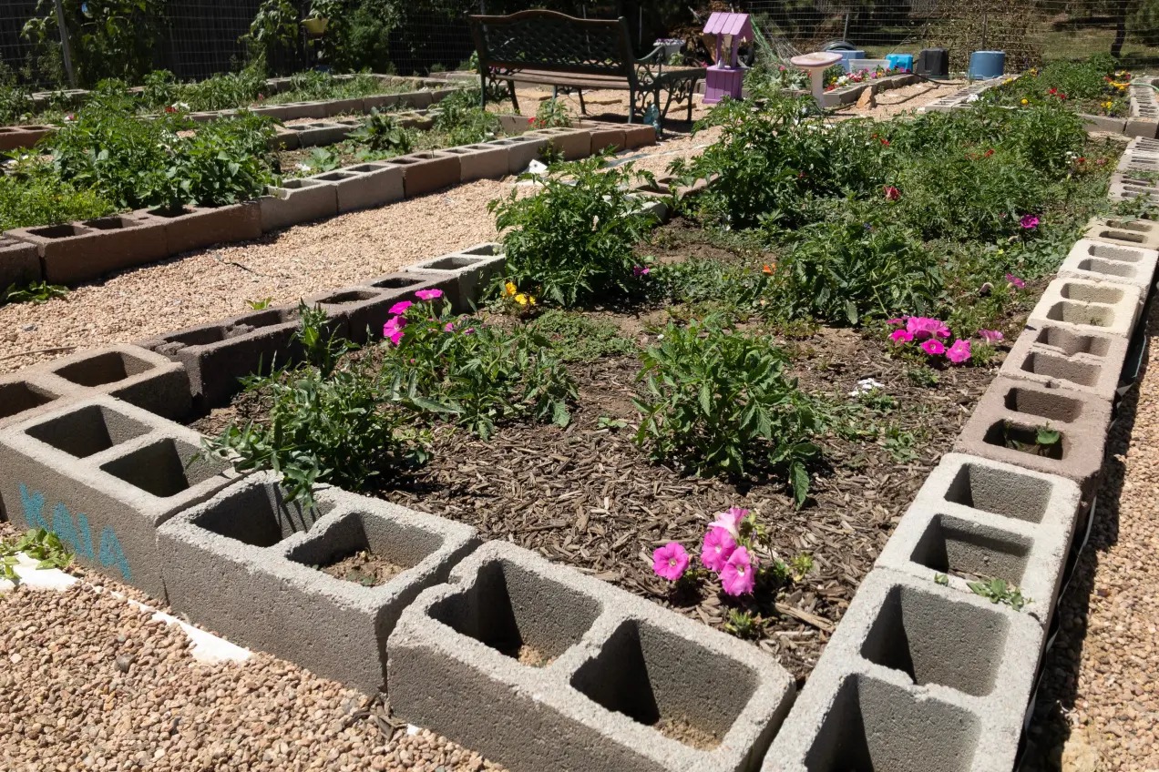 Отверстия в блоках можно засыпать землей и использовать их для выращивания цветов и зелени.