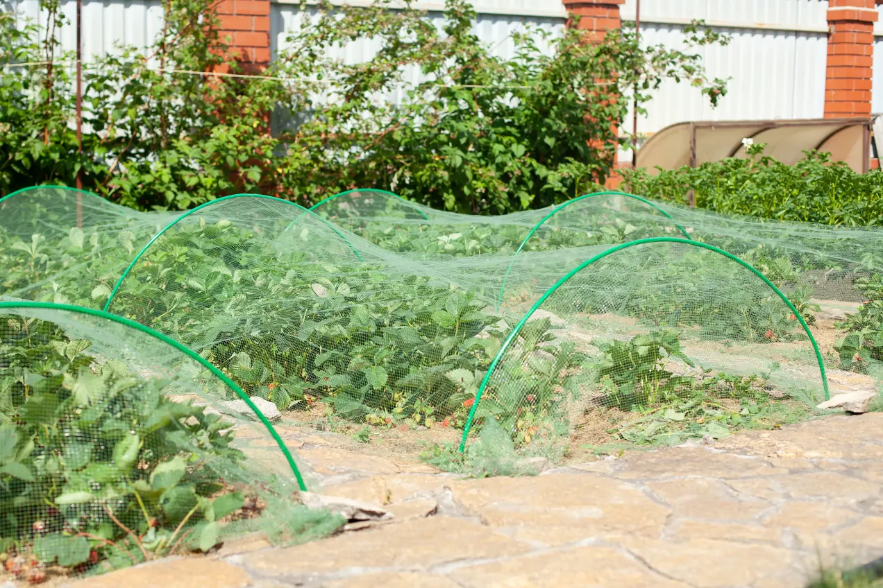 Не только насекомые вредят дачным посадкам. Птицы любят лакомиться жуками и ягодами, а кошки могут превратить грядку в туалет. В этом случае спасет сетка: пластиковая или металлическая. Сделайте из нее тоннель над растениями — и представители фауны не пройдут. Для защиты от заморозков сетку можно укрыть нетканым материалом.