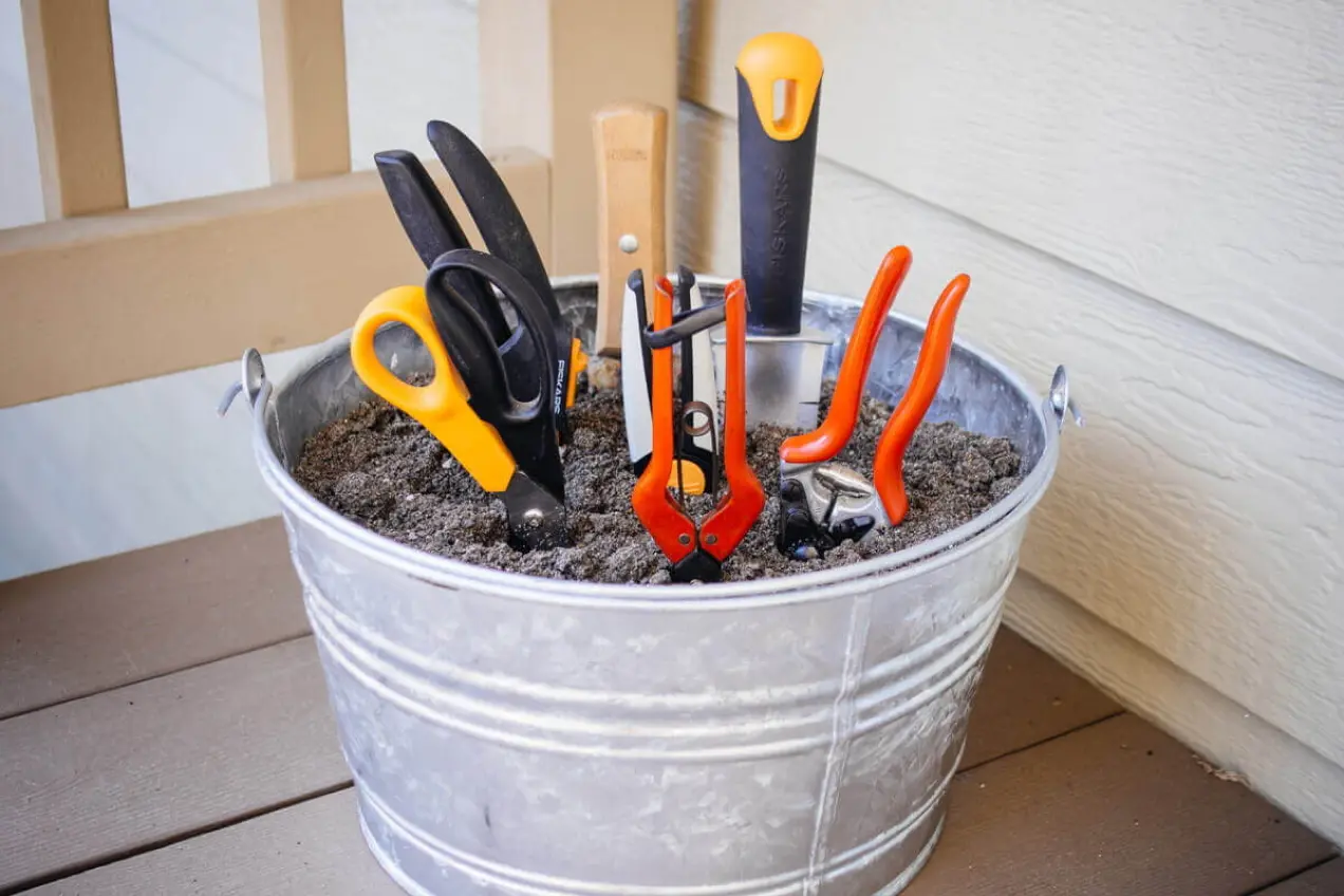 Если воспользоваться этим садовым лайфхаком, секатор и ножницы прослужат дольше. Наполните 10-литровое ведро песком, добавьте 800 мл моторного масла. Перемешайте смесь и погрузите в нее острый садовый инструмент. Перед использованием инвентарь необходимо только хорошо отряхнуть.