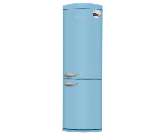 Тем, кто по-настоящему любит ретро и готов пойти ва-банк, при планировании интерьера надо мыслить крупными мазками и выбирать яркие цветные холодильники: иконический красный FAB от SMEG или двухкамерный Schaub Lorenz с голубым эмалированным корпусом.