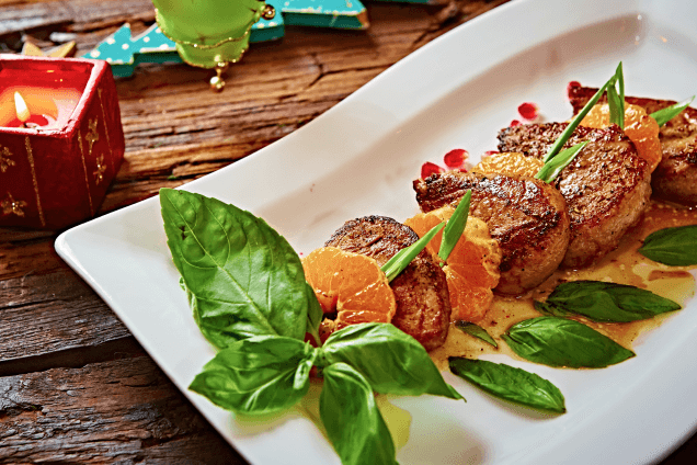 При подаче украсьте мандаринами и наслаждайтесь нежным мясом с пряной цитрусовой кислинкой.
