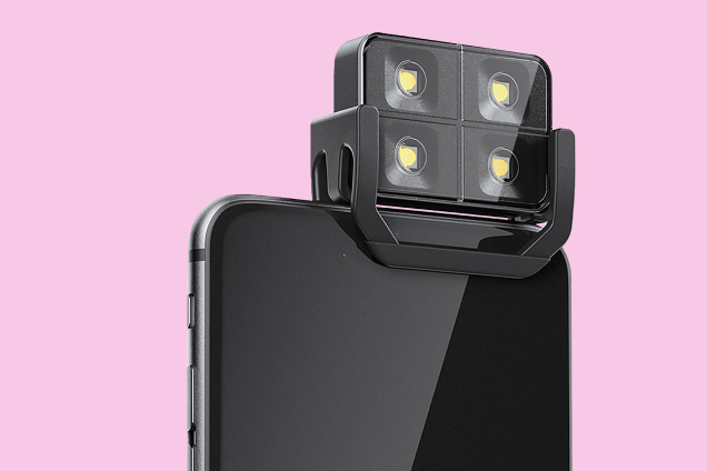 Для фотолюбителей, предпочитающих камеру телефона, компания Iblazr разработала портативную вспышку. Она работает от собственного аккумулятора и не тратит заряд телефона, включается в гнездо для наушников, а уровень яркости равен профессиональным фотовспышкам Уровень освещенности 200 люкс, цветовая температура 5 600 К — это показатели яркого дневного света. С ее помощью снимки больше не будут засвеченными или смазанными, ведь даже при плохом освещении в комнате источник света будет очень сильным.