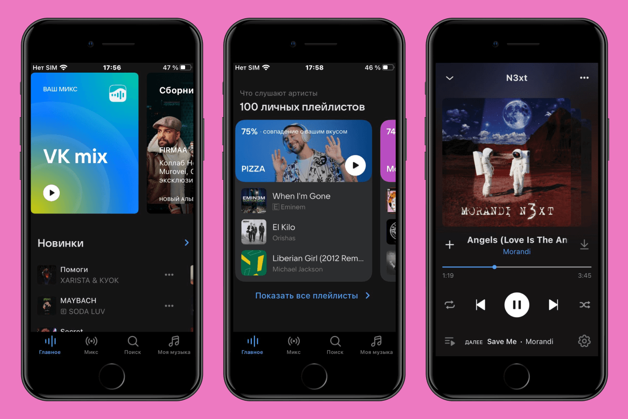 Приложение от владельцев соцсети «ВКонтакте» и синхронизировано с ним. Авторизоваться также можно по аккаунту в «Одноклассниках». Плеер предлагает для прослушивания 100 личных плейлистов музыкантов, новинки, чарты треков и другие подборки. В приложении можно настраивать эквалайзер, добавлять композиции, а также переносить плейлисты из других сервисов, например, «Яндекс Музыки».