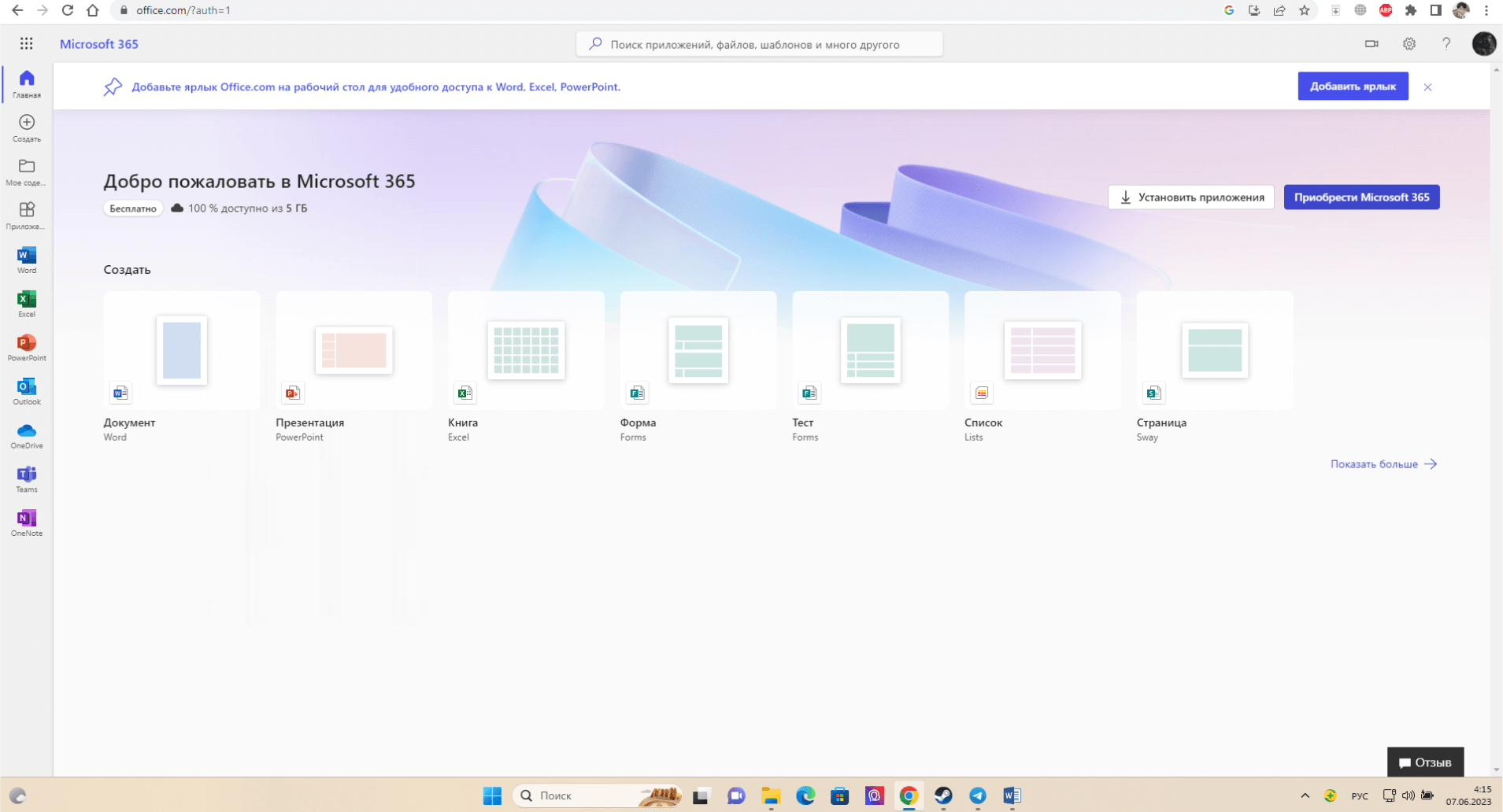 По-простому, Microsoft 365 — это отличный бесплатный аналог для тех, кто привык к классическому пакету Microsoft. Зачем искать аналоги MS Office, если есть привычный бесплатный «Офис» для Windows в веб-версии. Все важные кнопки остались на привычных местах. Вам не придется гуглить, как изменить междустрочные интервалы в Word или как вставить нужную формулу в Excel. MS 365 — облачная платформа Windows, то есть для стабильной и корректной работы вам потребуется подключение к интернету. Полноценно поработать офлайн не получится. А вот внести правки в документ в дороге или во время командировки запросто: у 365 есть и мобильное приложение, доступное для скачивания как для владельцев устройств с Android, так и для обладателей смартфонов на базе iOS. Кроме доступа к сети, потребуется учетная запись Microsoft.