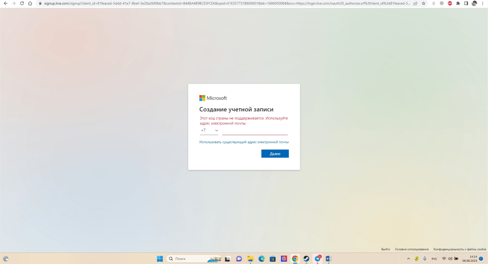 Сейчас регистрация новой учетной записи по номеру телефона для пользователей из России недоступна. Используйте альтернативные способы регистрации.