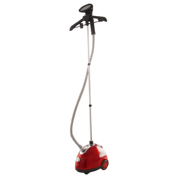 Этот напольный отпариватель с 1,45-литровым резервуаром и мощностью 1580 Вт подходит для глажки, отпаривания и дезинфекции. Нагрев занимает до 2 минут, после чего прибор подает пар под давлением 1 бар и с интенсивностью до 30 г/мин по шлангу длиной 1,2 м. Температуру можно настраивать в диапазоне 98−100 °С с помощью удобно расположенного поворотного регулятора. На пластиковом корпусе, в который встроен бойлер, располагается телескопическая стойка с возможностью изменения высоты. На ней есть удобная вешалка. В комплект входит варежка, защищающая руку от воздействия пара. Подошва утюжка выполнена из нержавеющей стали. Прибор подключается к розетке 1,3-метровым сетевым проводом. Для быстрого и легкого перемещения предусмотрены колесики.
