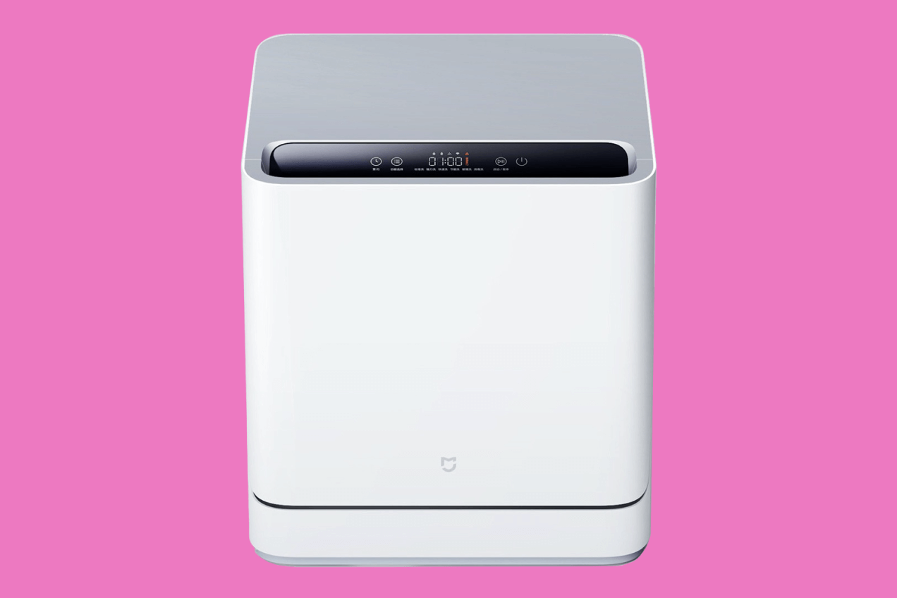 Еще одно устройство от Xiaomi — умная посудомоечная машина. Ее можно разместить прямо на столешнице: ширина машинки составляет 46 см, глубина — 42 см. Несмотря на компактный размер, за один раз в машинке можно помыть 32 предмета посуды (примерно 4 комплекта). Есть 6 режимов, длительность работы варьируется от 30 минут в быстром режиме до 2 часов в режиме интенсивной очистки.