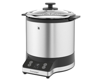 Индукционная плита со стальным корпусом и нагревающейся панелью из закаленного стекла. На ее корпусе — всего одна кнопка: с ее помощью можно включать и выключать устройство, регулировать температуру нагрева. Предусмотрено 5 встроенных программ — от готовки на пару до фритюра. Подключается к телефону через Wi-Fi.