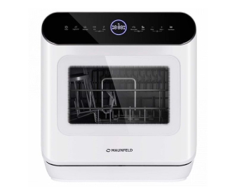 В чем особенность? Машинка не требует установки. Не нужно заранее планировать, куда ее поставить: достаточно подсоединить один шланг к крану для набора воды и один шланг к сливу для вывода воды. Воды она расходует немного — около 5 литров. Помимо мытья, машинка умеет сушить и дезинфицировать посуду. Есть Wi-Fi-модуль: через приложение получится запланировать мытье посуды, настроить параметры мытья, отследить уровень моющего средства.