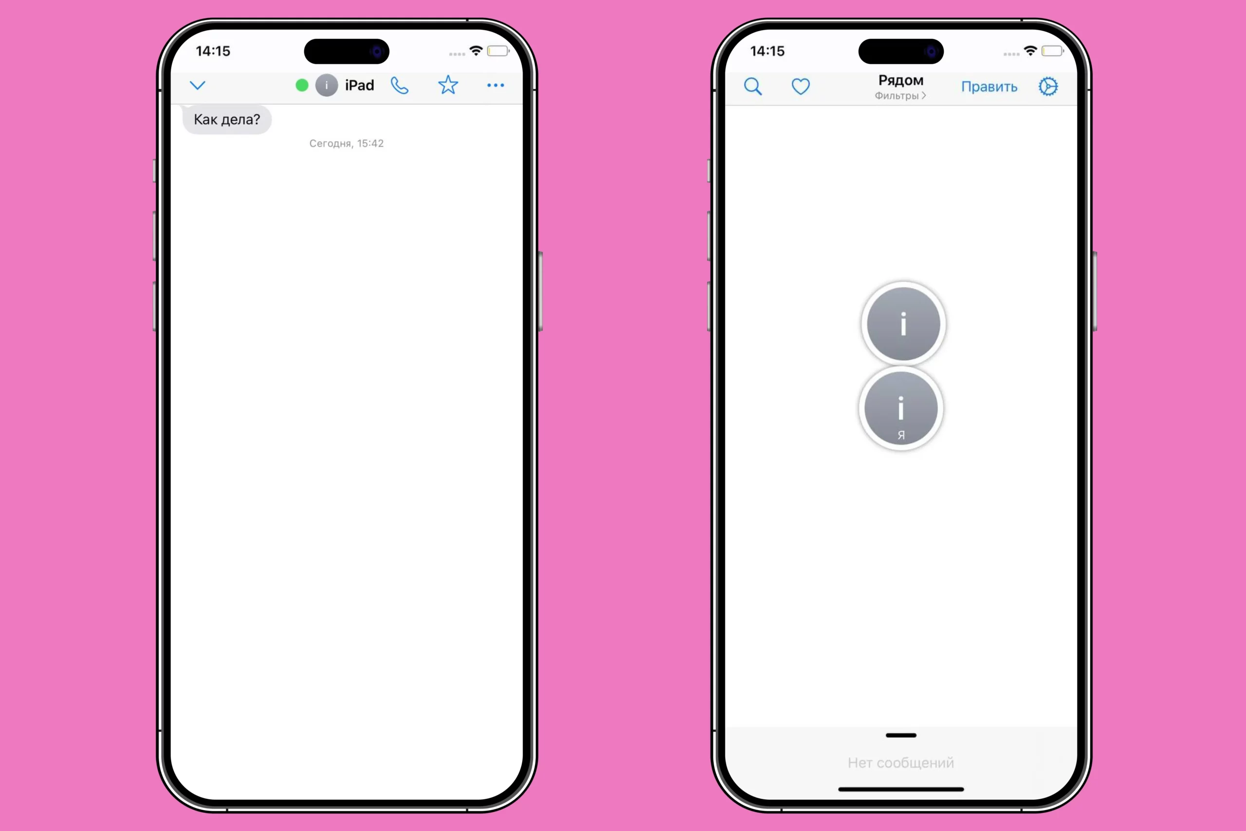 При поиске контактов поблизости в первый раз не сразу понятно, что происходит на экране. Юзеры отображаются как кружки: чем ближе человек, тем больше кружок. Чтобы законнектиться, необходимо тапнуть на кружок пользователя, тогда откроется чат.