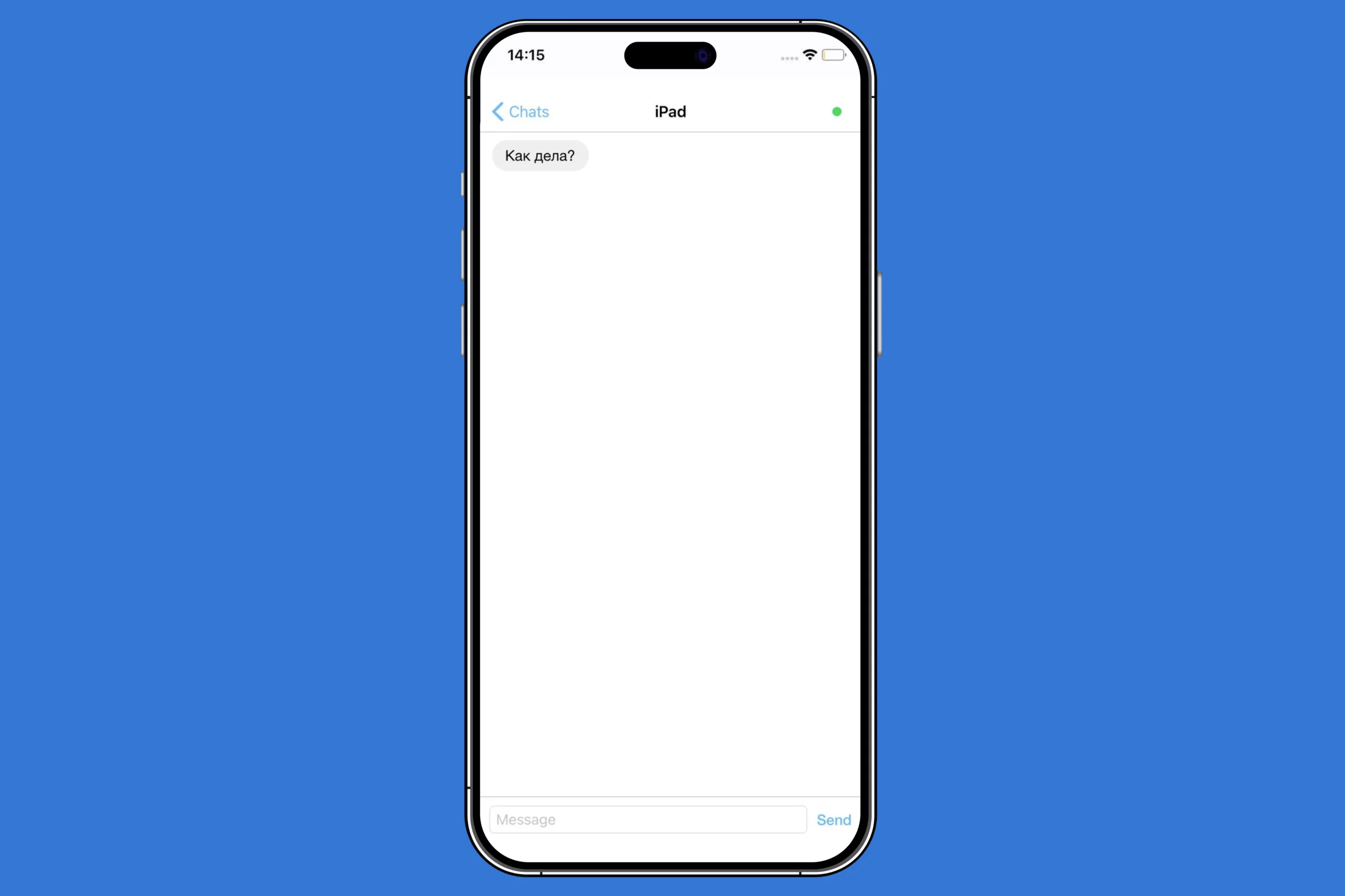 У AirChat очень простой интерфейс, который напоминает обычные сообщения на телефоне. При коннекте с другим пользователем открывается чат, в котором можно передавать сообщения.