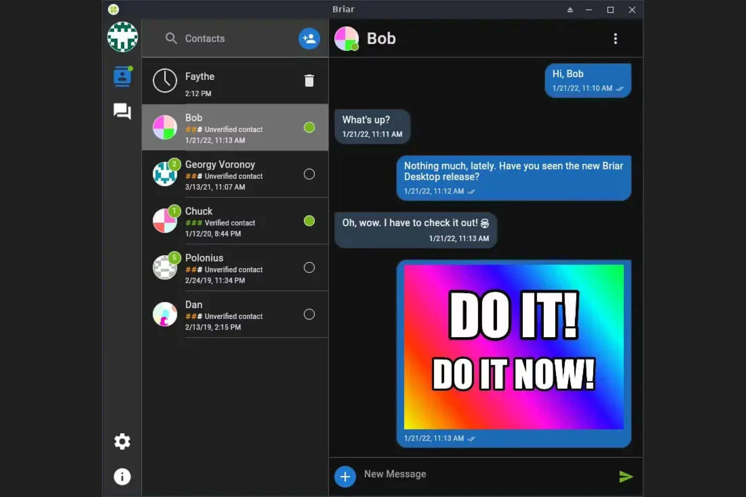 Общаться через Briar можно лишь с людьми из перечня контактов — отправлять сообщения другим пользователям даже с установленным приложением нельзя. В Briar доступны не только личные чаты и группы: есть функции блога и форумов. Мессенджер хвалят за высокий уровень защиты данных и продвинутые технологии шифрования. Но сервис потребляет много энергии, поэтому не стоит использовать его при низком уровне заряда.