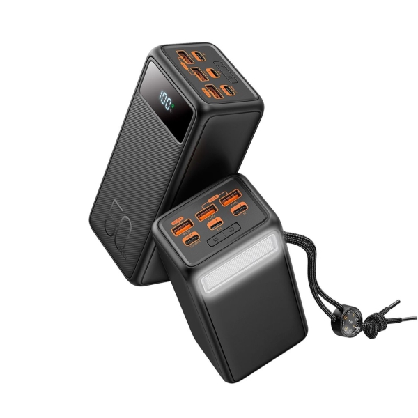 У него огромная емкость — 50 000 мАч, можно зарядить все, что угодно, и даже не один раз. Аккумулятор поддерживает быструю зарядку и одновременную зарядку четырех устройств. Есть разъем Lightning и пять портов USB (типы A и C).