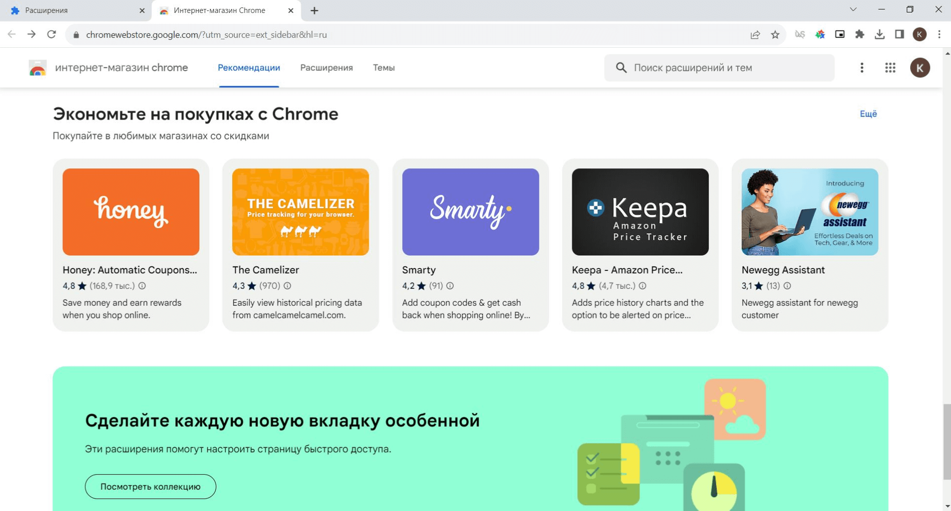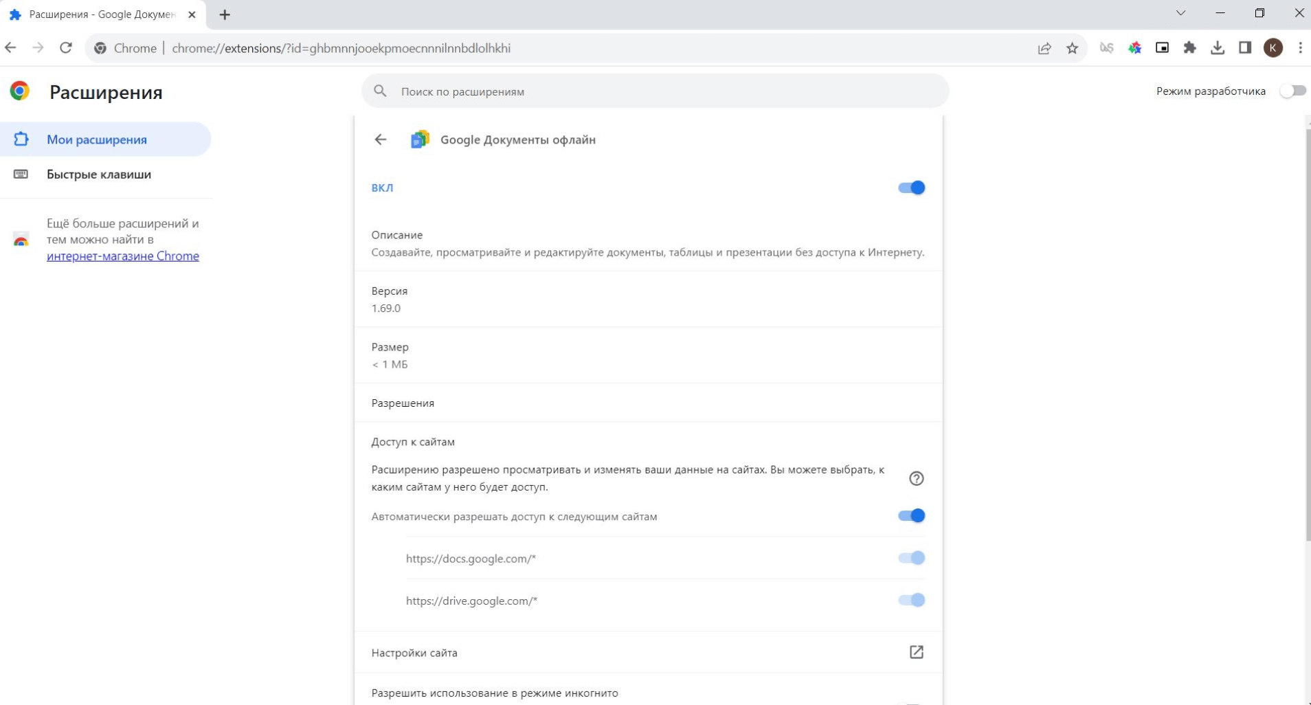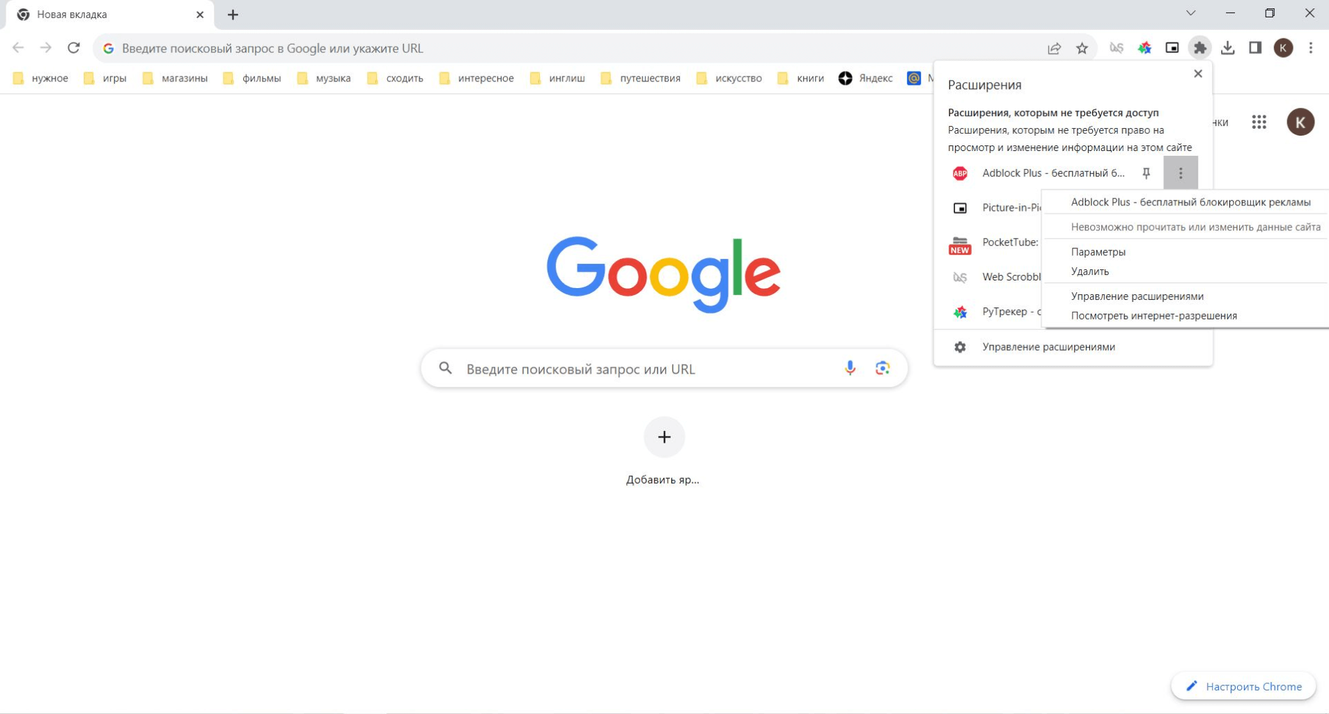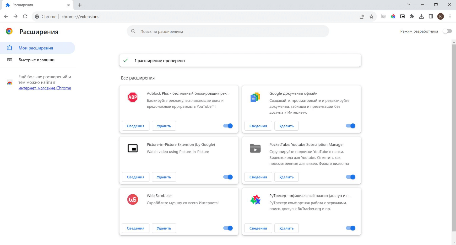 Библиотека расширений для Google Chrome, пожалуй, самая обширная. Установленные расширения привязываются к аккаунту в Google — получить к ним доступ можно через нажатие на иконку с пазлом в верхней части интерфейса, возле браузерной строки, или перейдя через контекстное меню (иконка с тремя точками). Через «Управление расширениями» вы попадаете в подраздел браузера, отвечающий за их активацию и установку. Самые используемые из них можно закрепить в интерфейсе вкладки через иконку пина, а те, что необходимы вам эпизодически — останутся в общем списке. Индивидуальные настройки каждого приложения — здесь же, за кнопкой «Сведения».