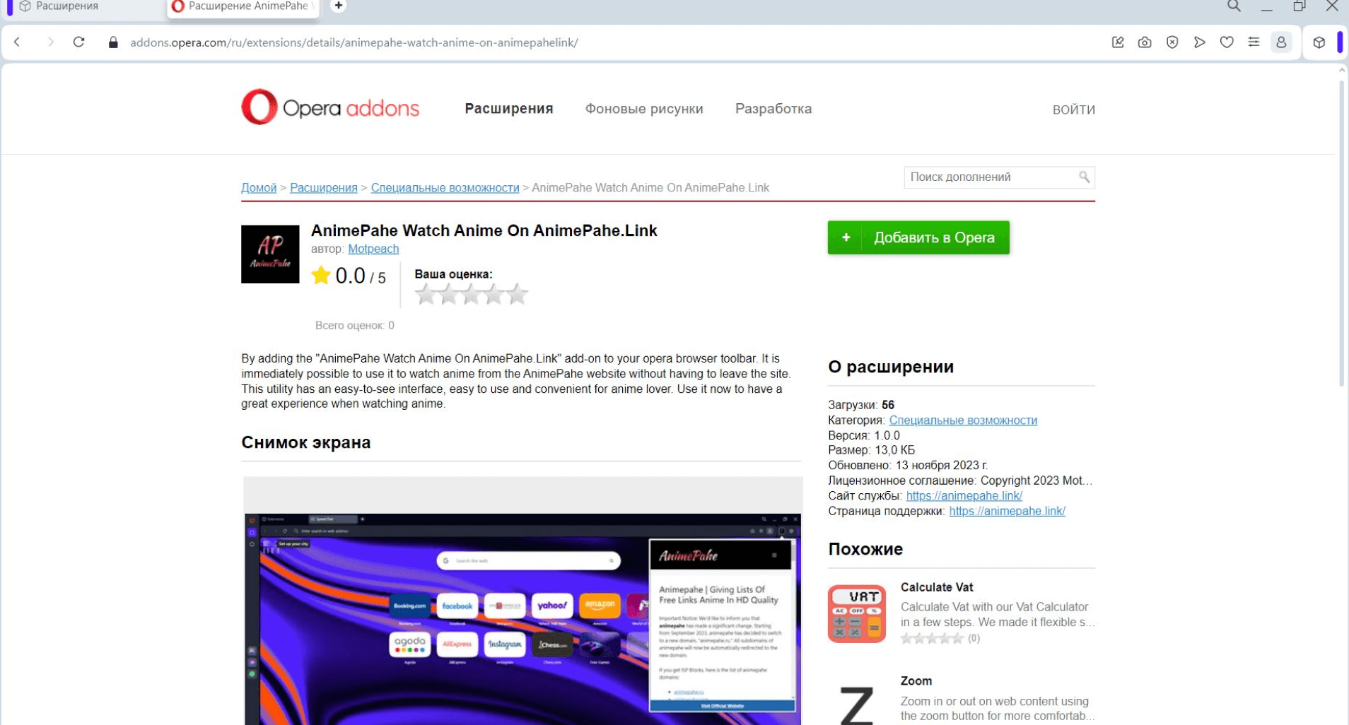 Чтобы добавить расширение в свой список, жмите на «Добавить в Opera».