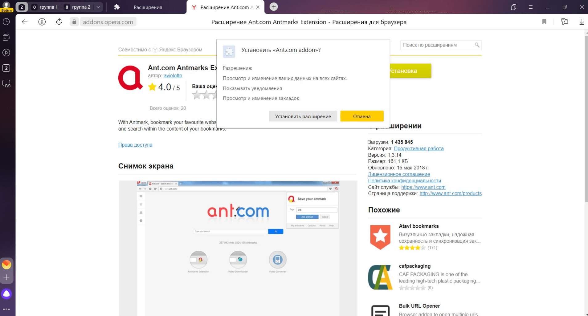 Браузер от «Яндекса» не имеет собственного каталога расширений, но успешно совместим с каталогом расширений Opera.