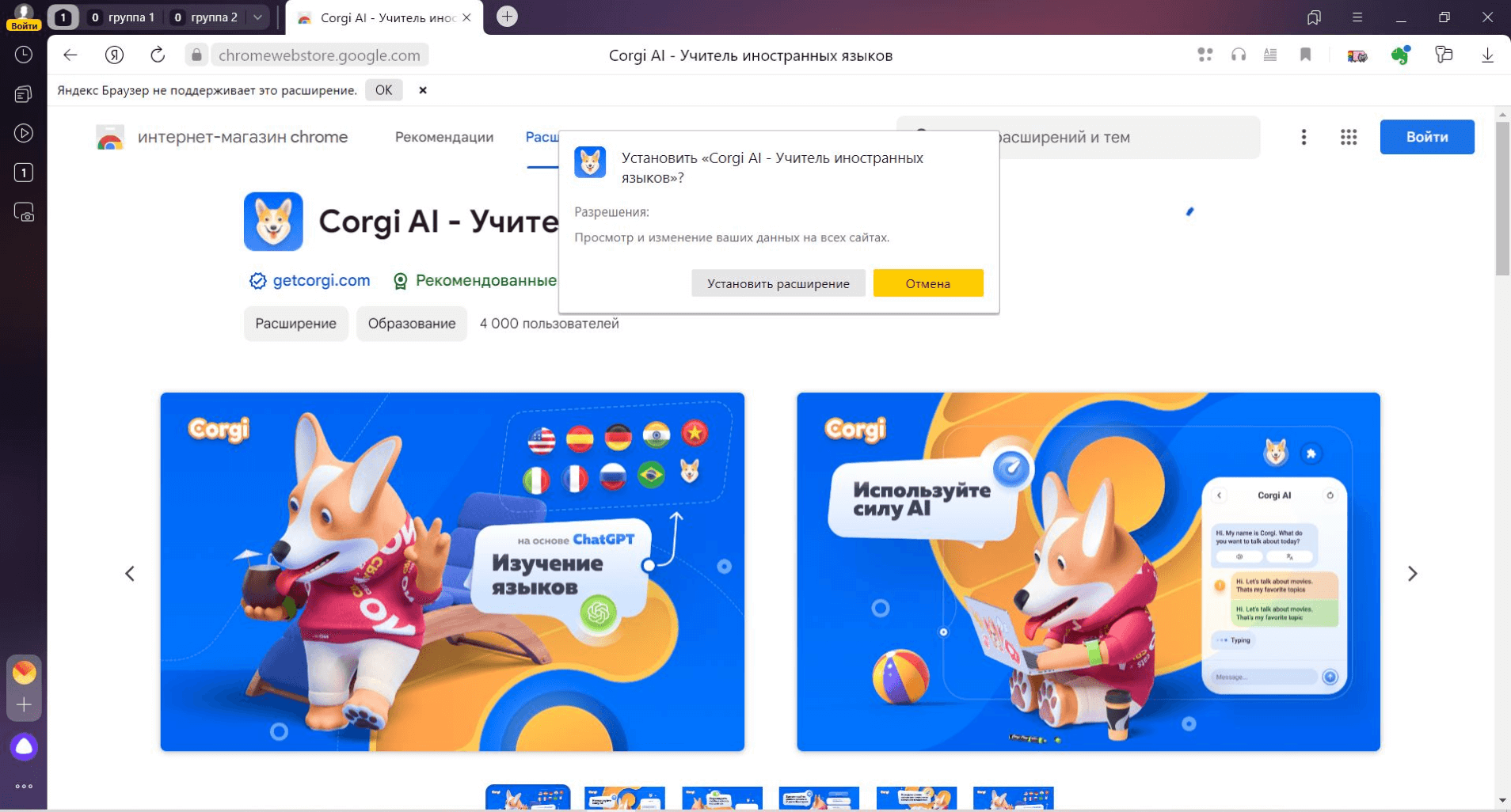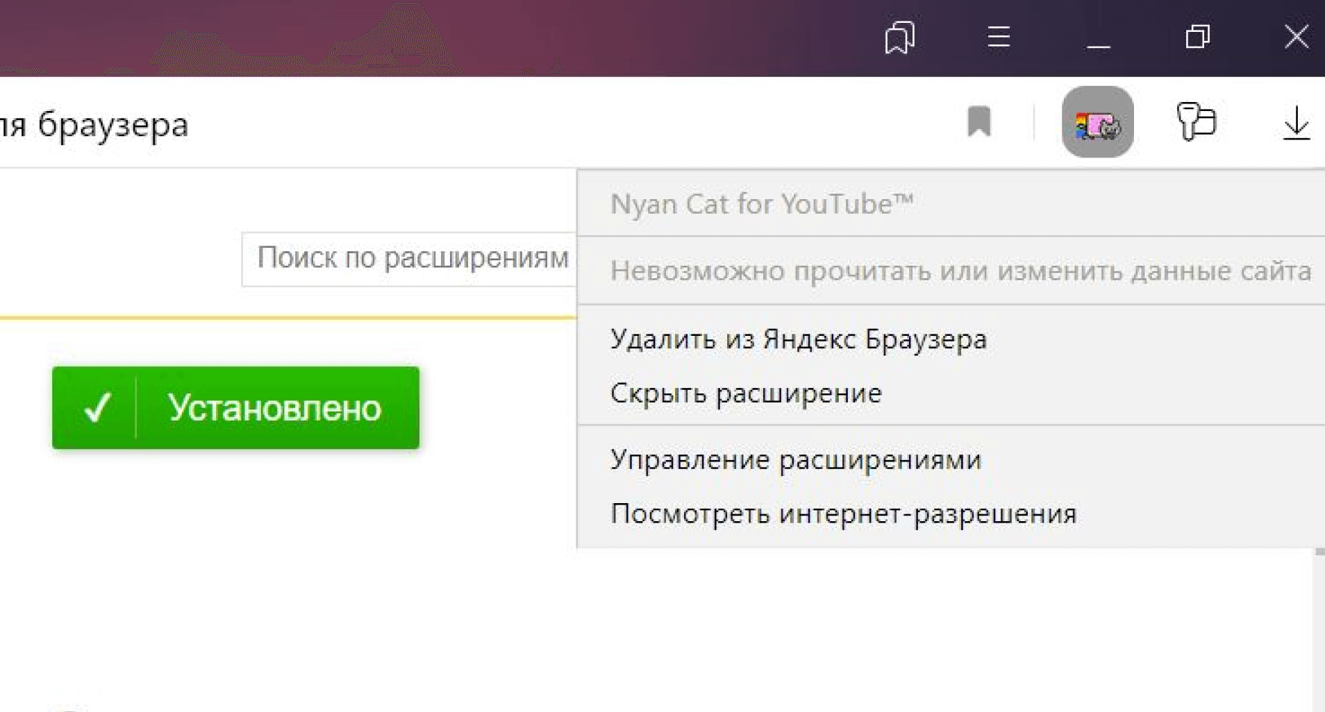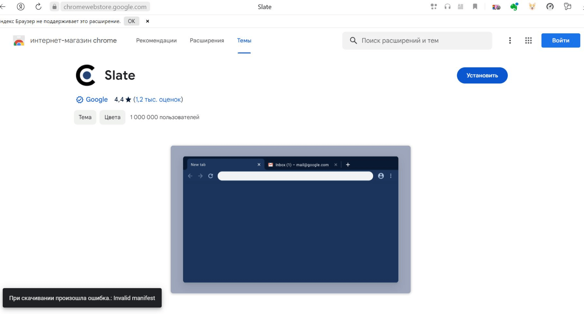 Какое-то из расширений — например, цветовые темы — могут не поддерживаться «Яндекс.Браузером»: система сообщит об этом при попытке установки.