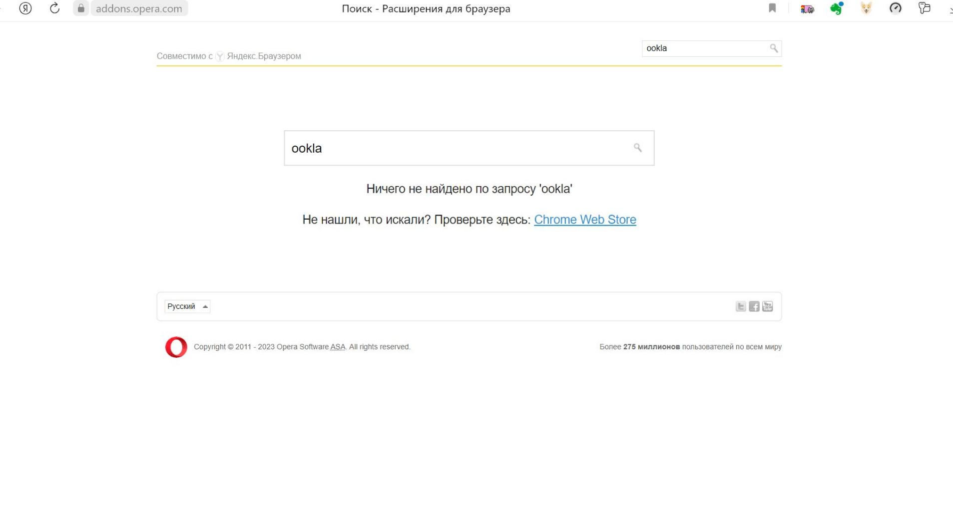 Хотя в документации говорится только о каталоге «Оперы», расширения «Гугл Хром» спокойно устанавливаются и используются в «Яндекс.Браузере». Просто откройте магазин расширений по ссылке — или переходите туда со страницы поиска, если того, что требуется, не найдется в «Опере».
