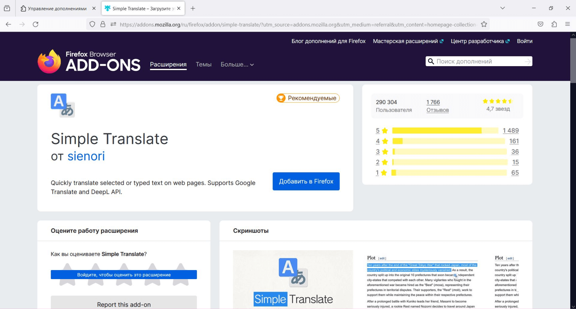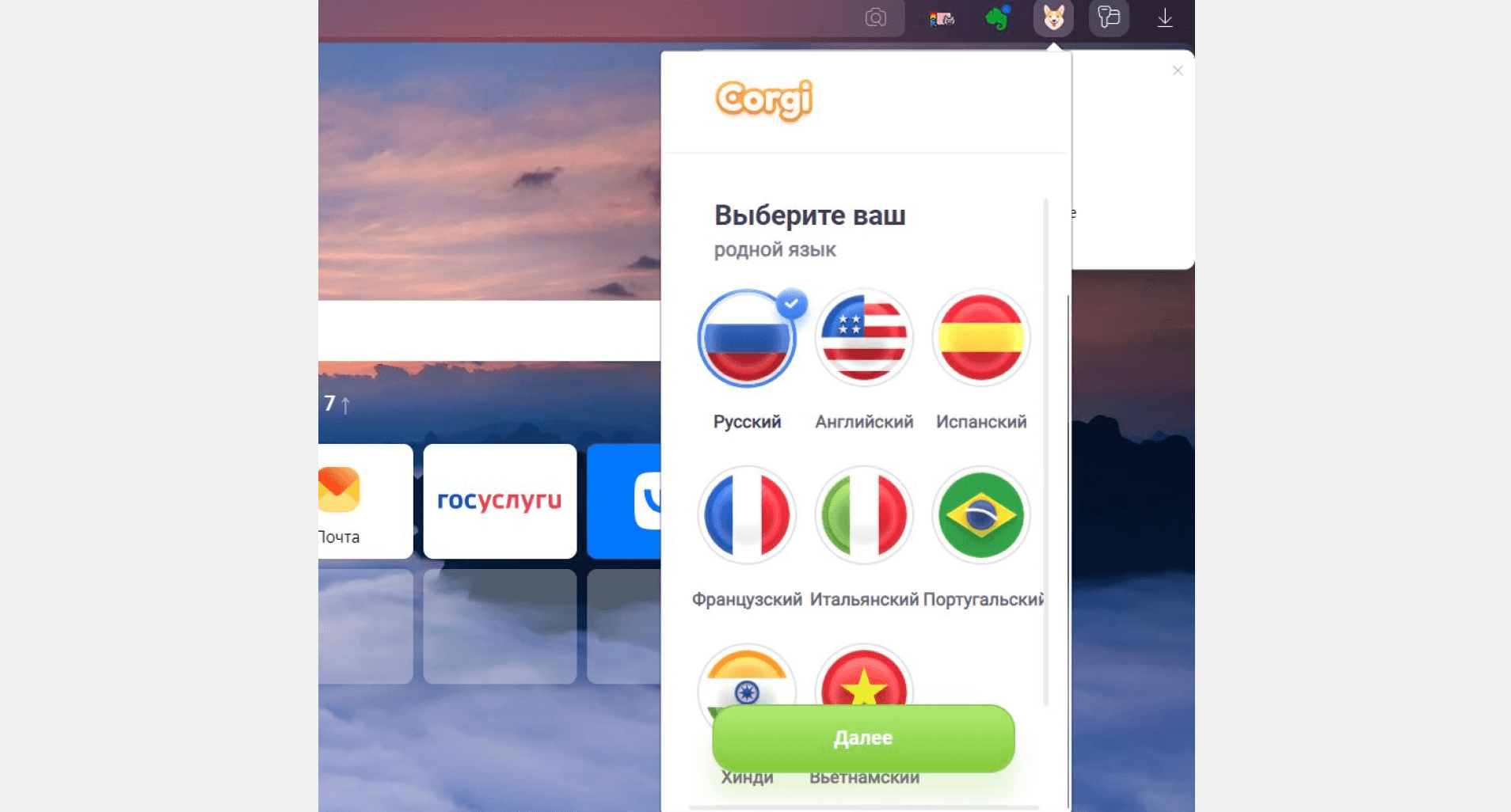 Собственное расширение переводчика от «Яндекса». Плюсы очевидны: легко активировать и выбрать язык, большое количество представленных языковых пар.