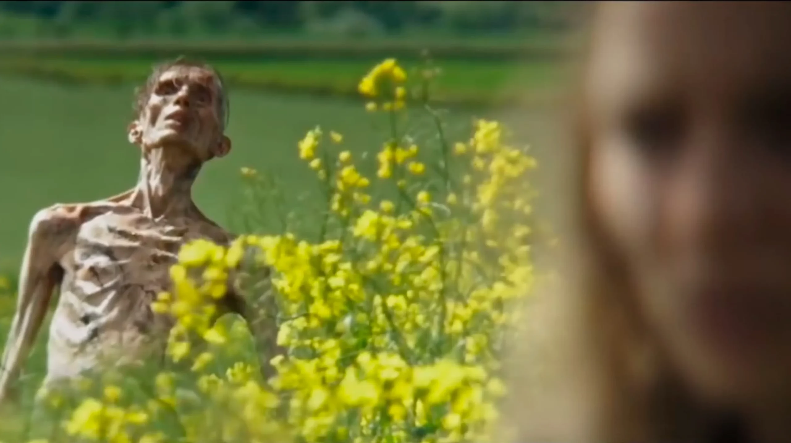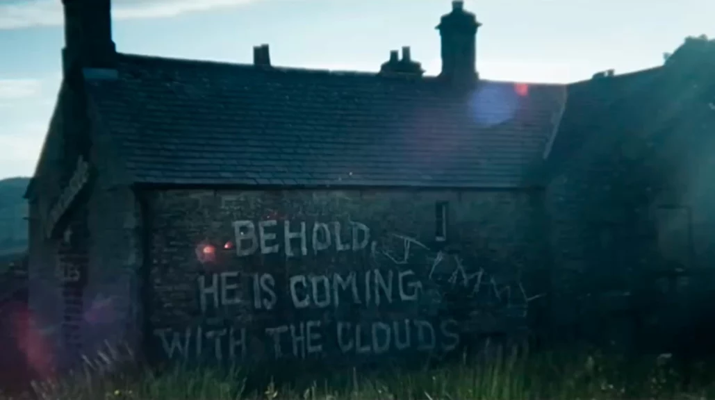 Но вернемся к Джиму из первой части — внимательные зрители заметят в трейлере аж две отсылки к персонажу. В одной из них его имя можно увидеть написанным на стене амбара рядом с цитатой: «Вот он идет с облаками» (Behold he is coming with the clouds). В другой — имя нацарапано на теле инфицированного. Обе сцены как бы говорят, что Джимми — это своего рода мифическая фигура, которая играет большую роль в повествовании «28 лет спустя».