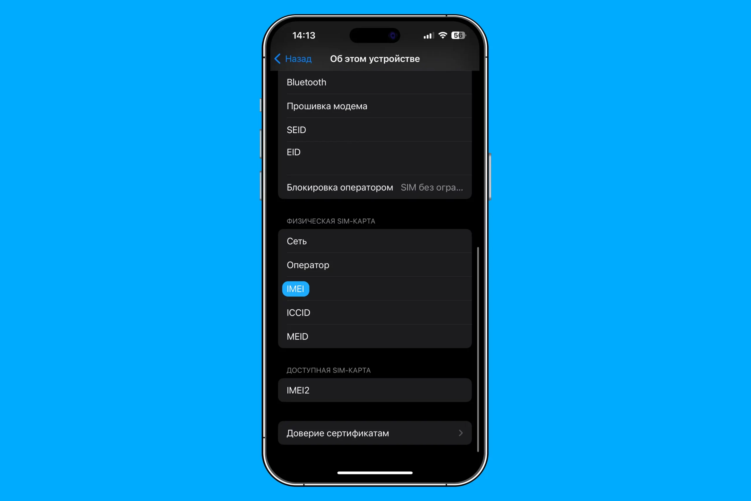 IMEI в «Настройках» iPhone