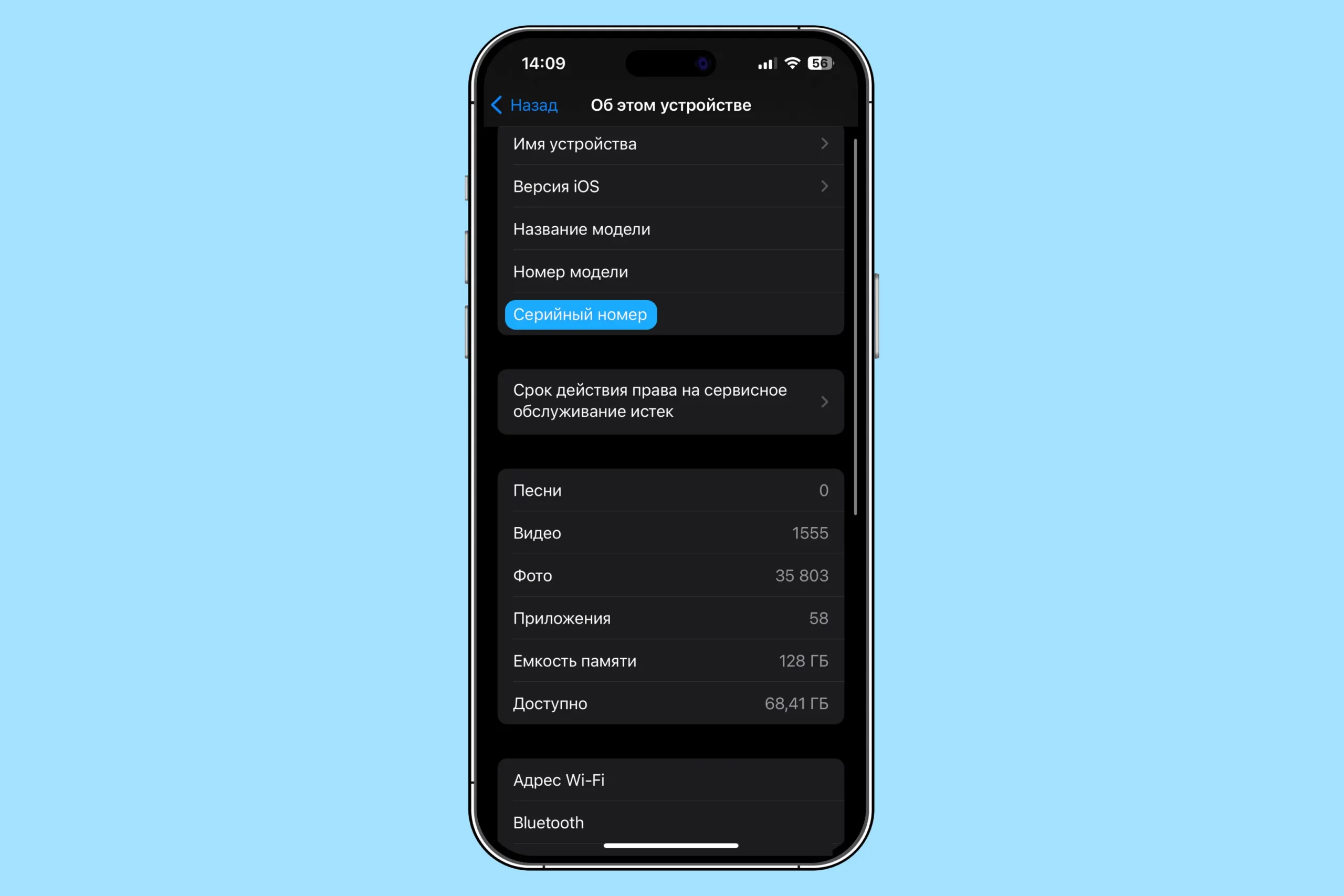 - Найдите строчку с серийным номером.