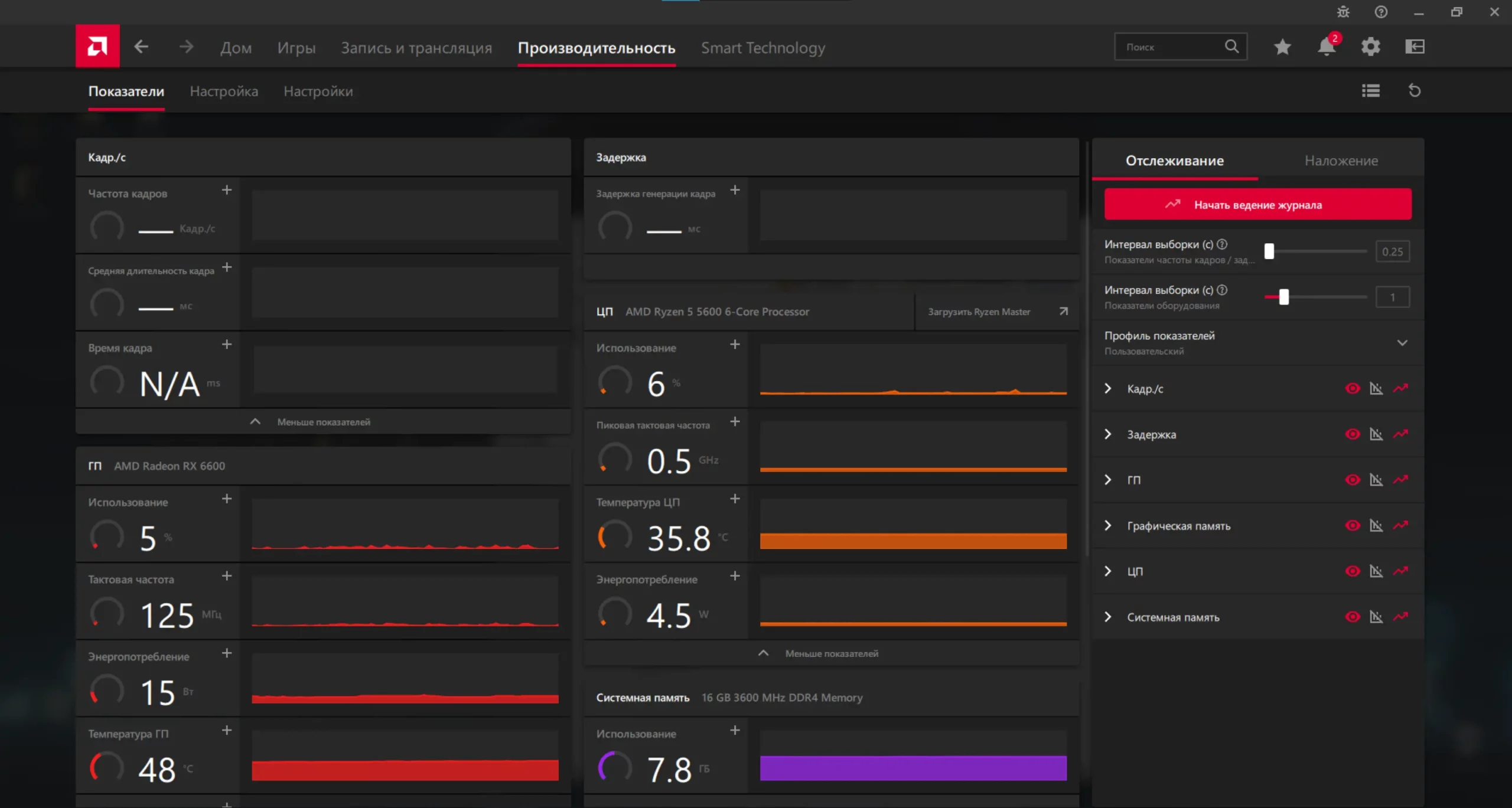 Сам оверлей настраивается во вкладке «Производительность» → «Показатели» → «Отслеживание». Здесь можно указать, какие параметры должны отображаться. Списки показателей раскрываются, и можно конкретно указать, что вы хотите видеть на графиках.