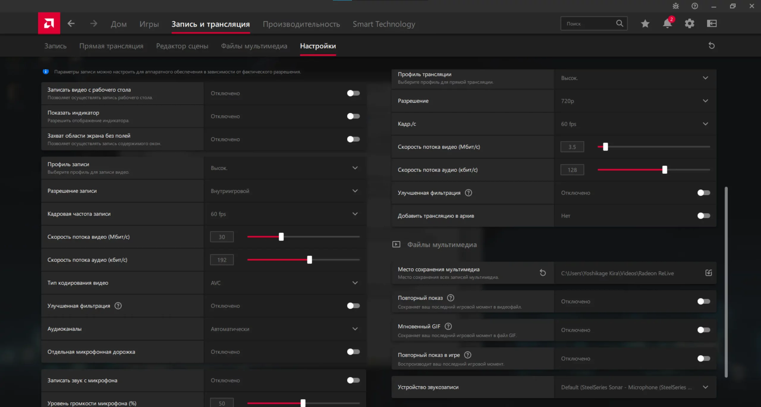 Хотите создавать игровой контент? В программном обеспечении Radeon Software есть инструменты для записи видео и ведения трансляций. Они находятся во вкладке «Запись и трансляция». Но для начала придется покопаться в настройках.