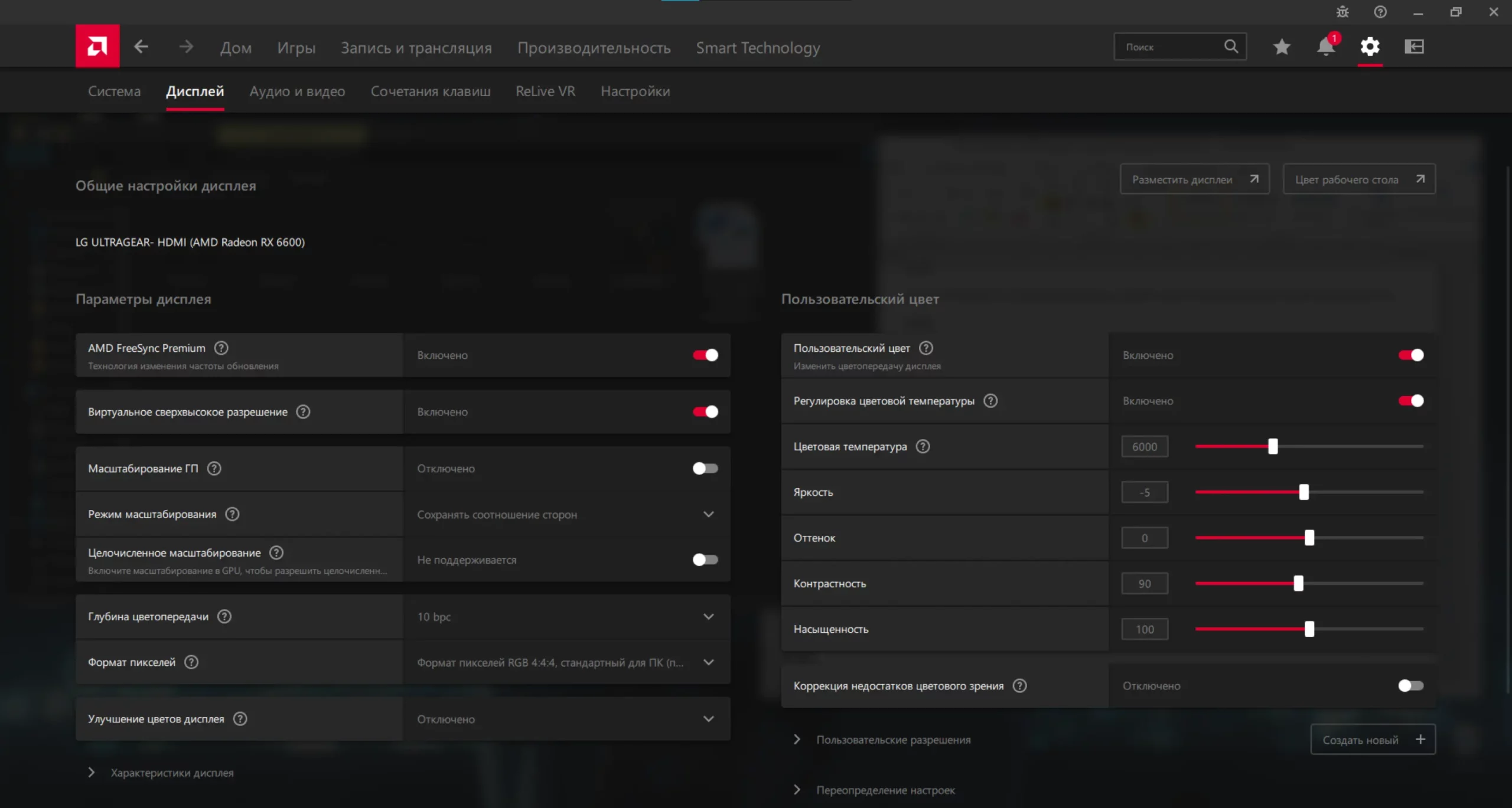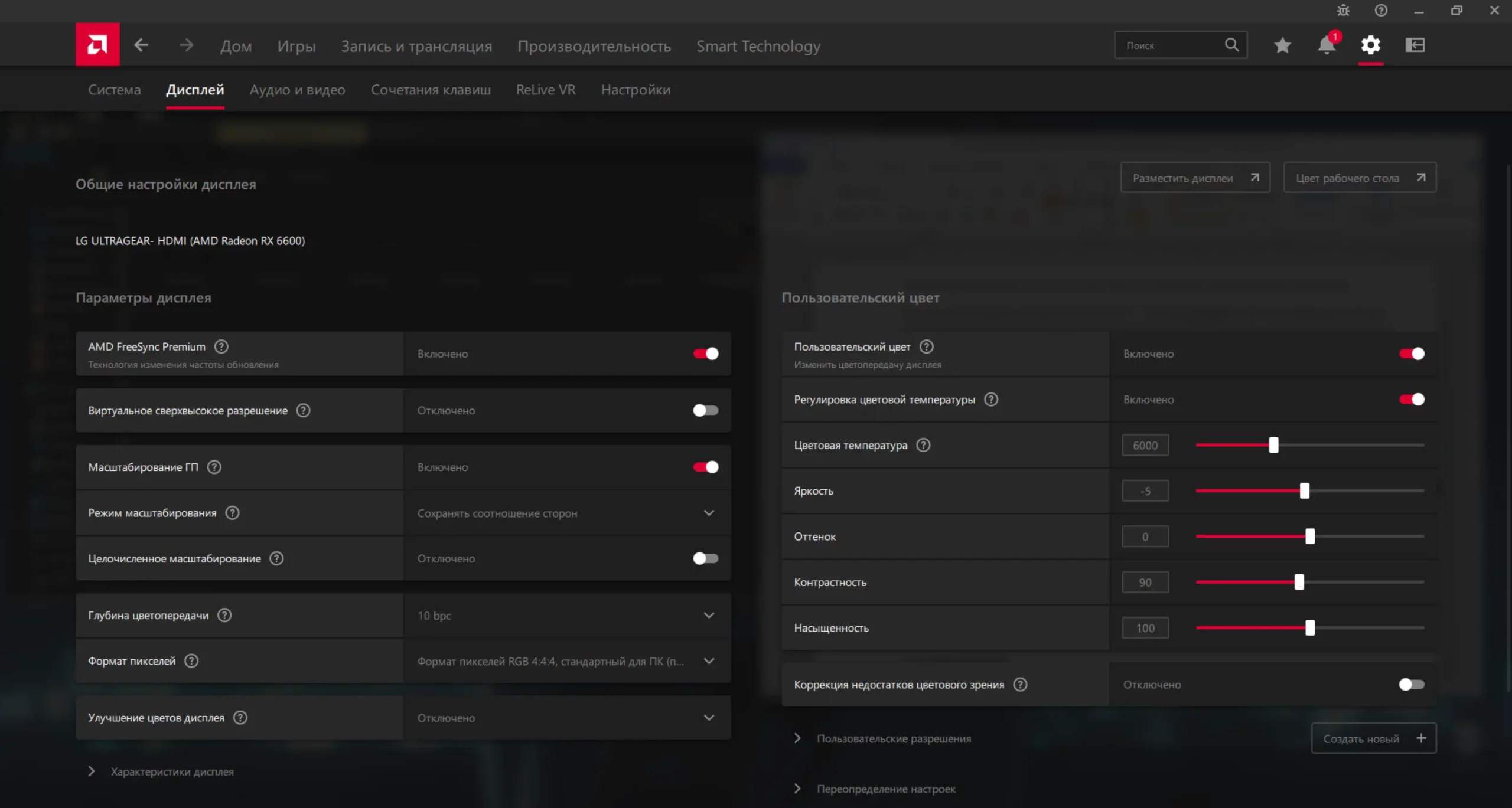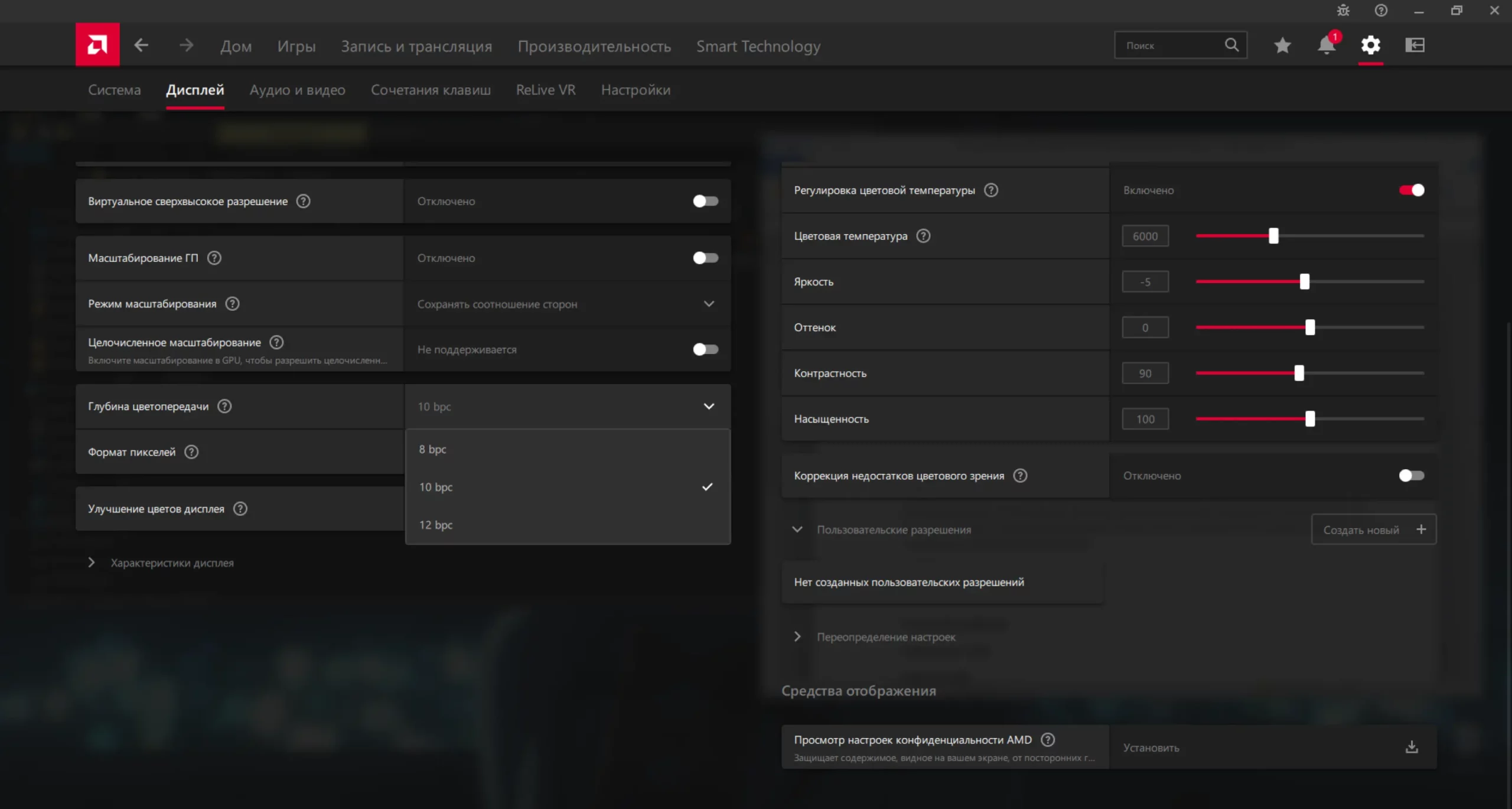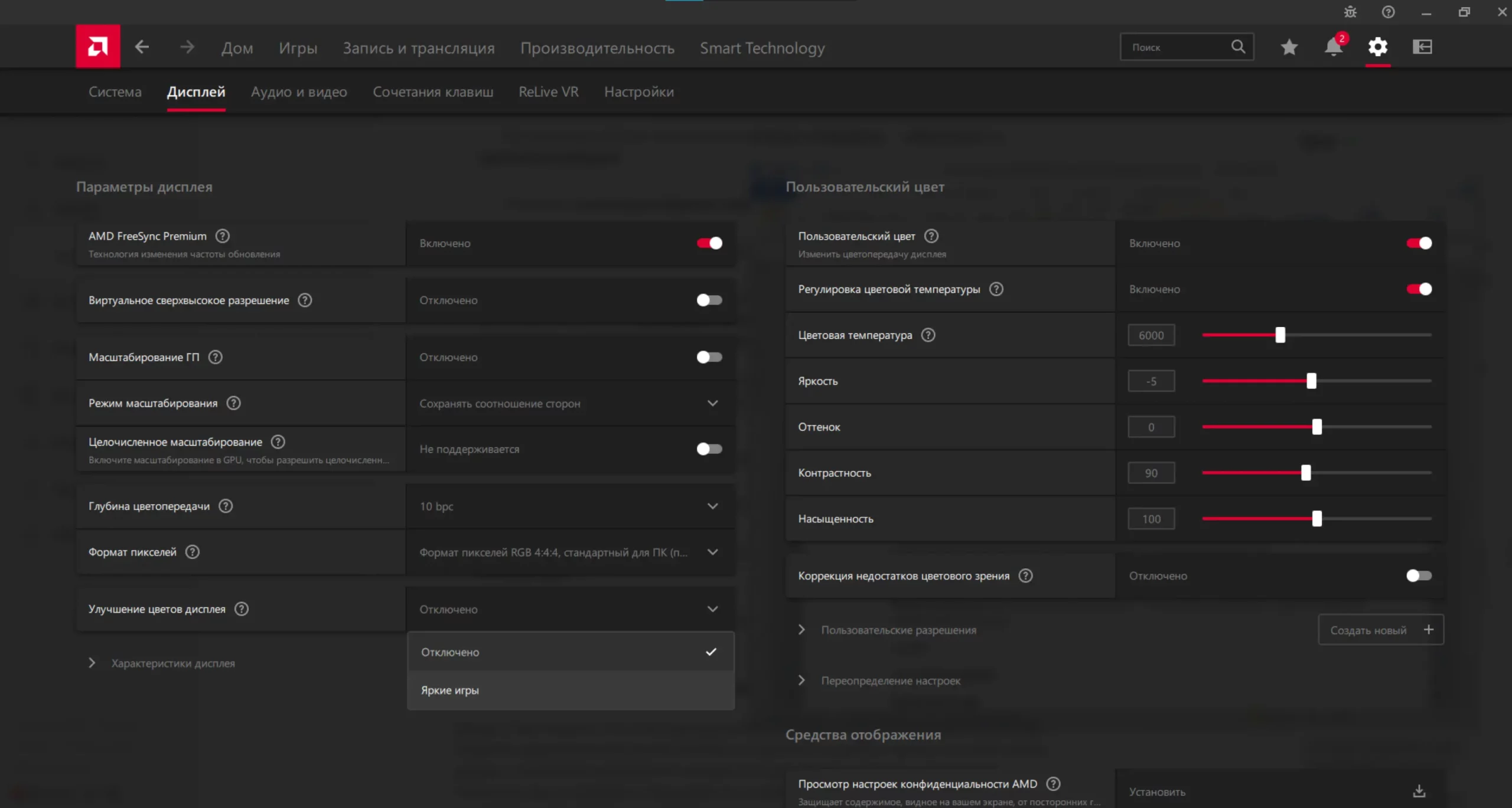 В Radeon Software доступна гибкая настройка цветовой схемы дисплея. Эта фишка особенно полезна в случае с дешевыми мониторами, которые плохо откалиброваны с завода. Чтобы выправить оттенки и подобрать цветовую гамму, сделайте следующее: