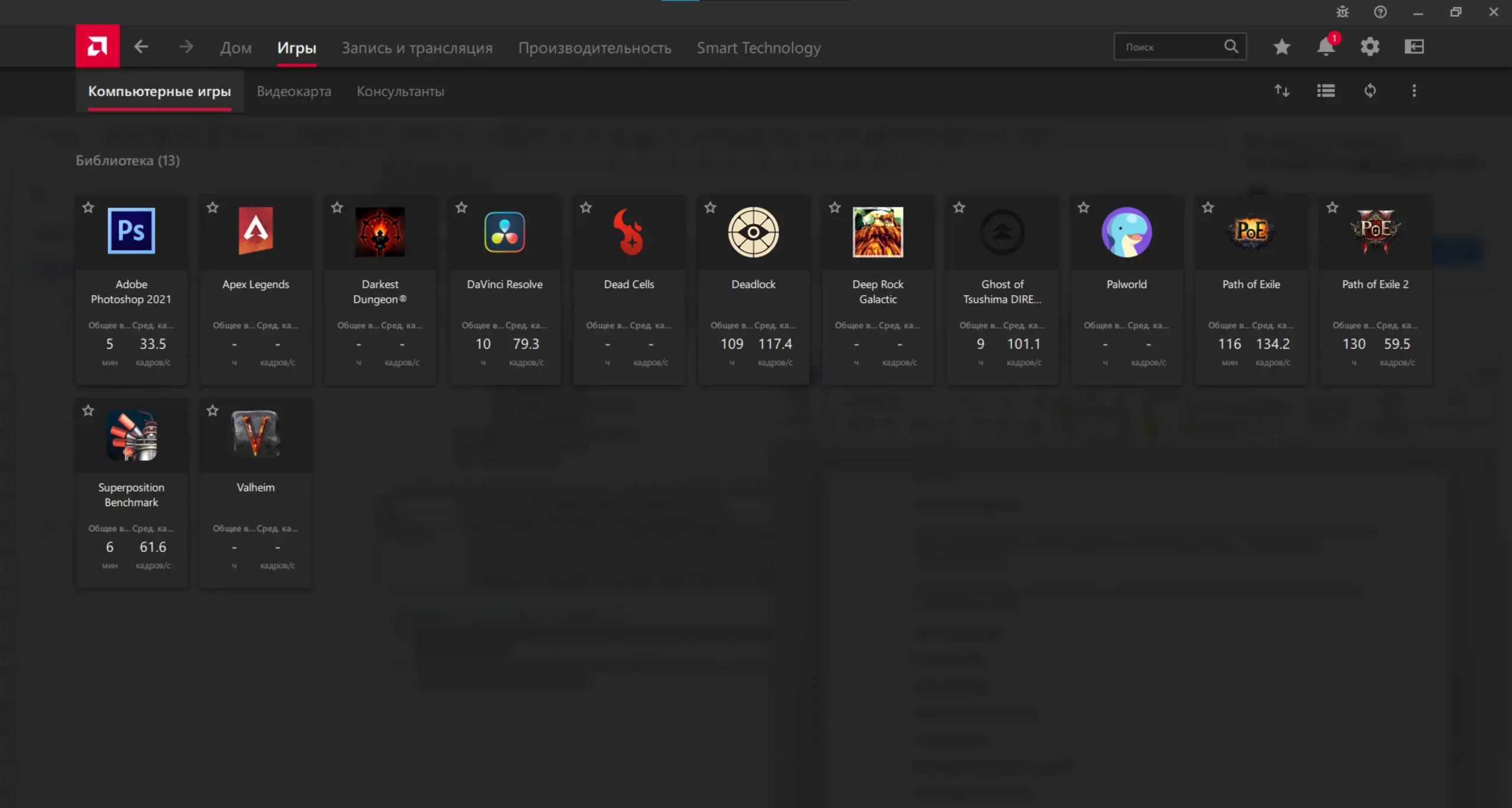 После корректировки параметров дисплея время разобраться с настройкой AMD Software Adrenalin Edition для игр. Во вкладке «Игры» доступны три раздела: «Компьютерные игры», «Видеокарта» и «Консультанты».