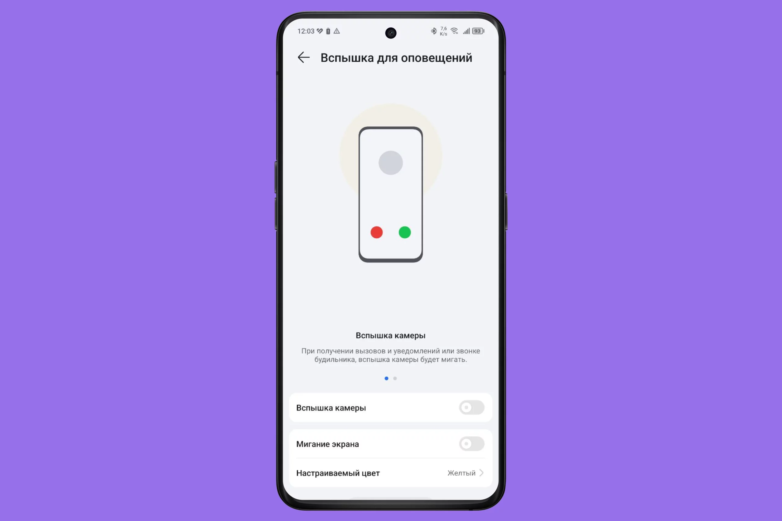 Вспышка как сигнал уведомления