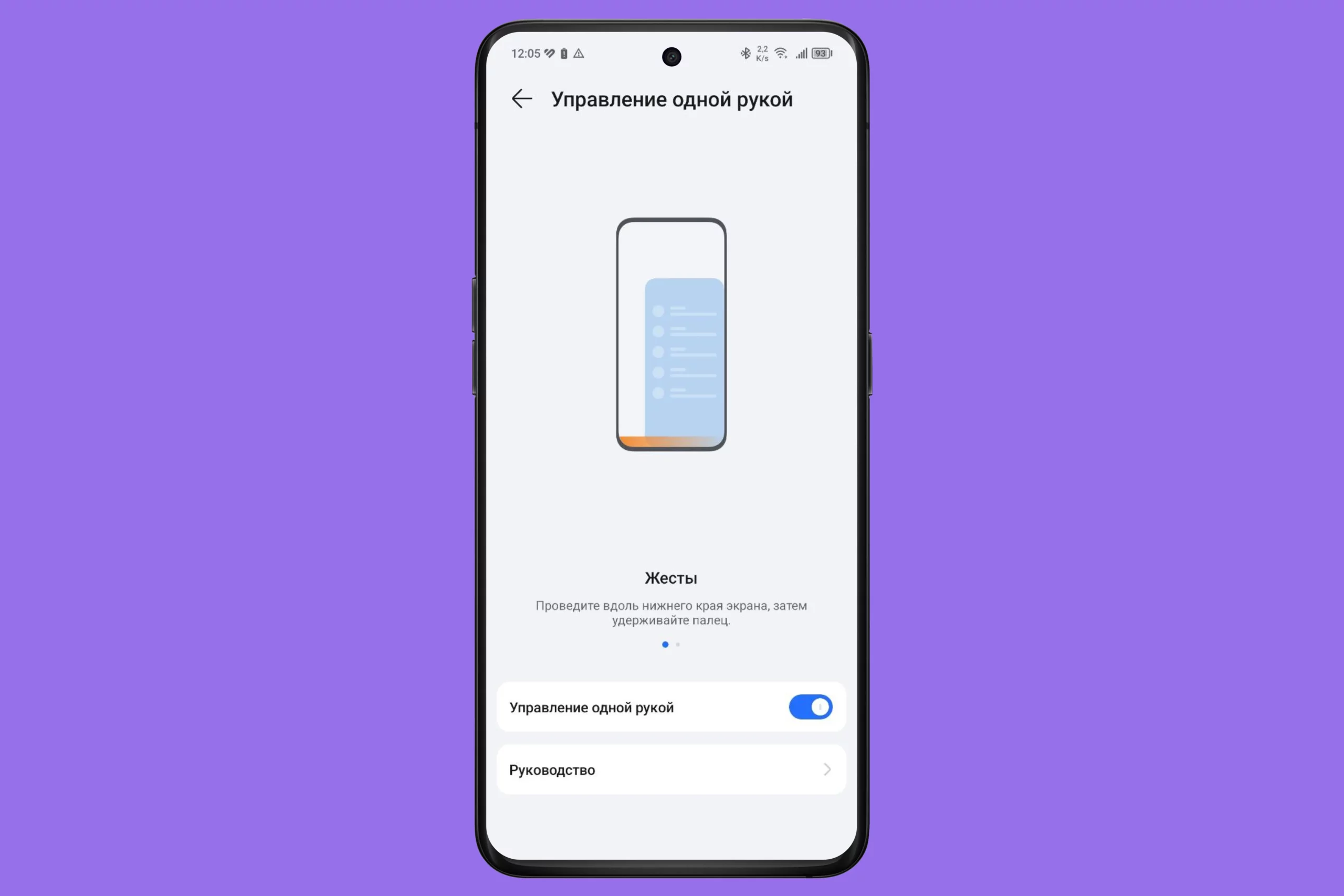 - Откройте «Настройки» → «Система» → «Жесты» → «Управление одной рукой».