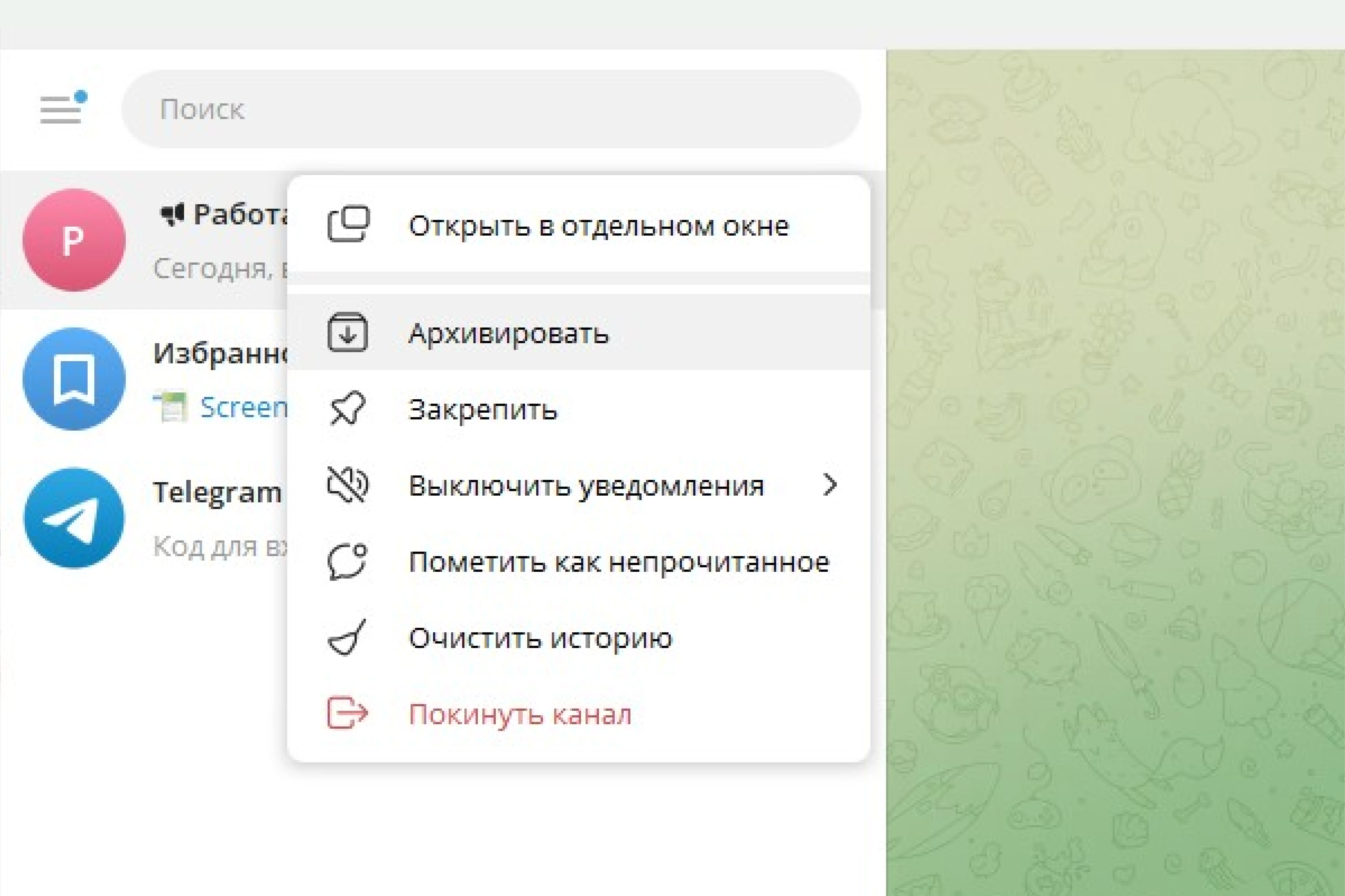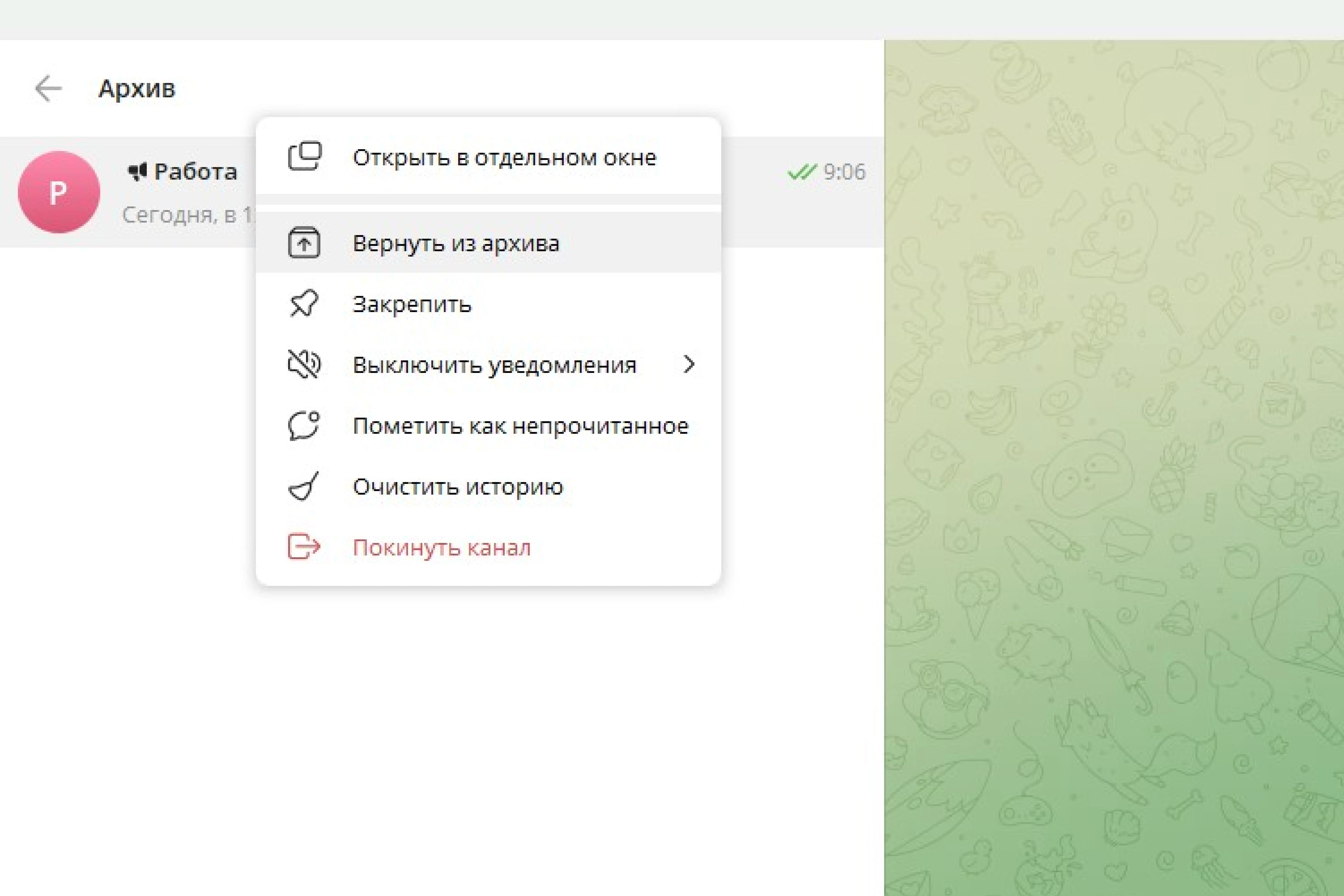 Иногда мы убираем что-то по ошибке или чат снова становится актуальным. Вернуть архив (точнее, чат из него) так же просто, как и добавить.