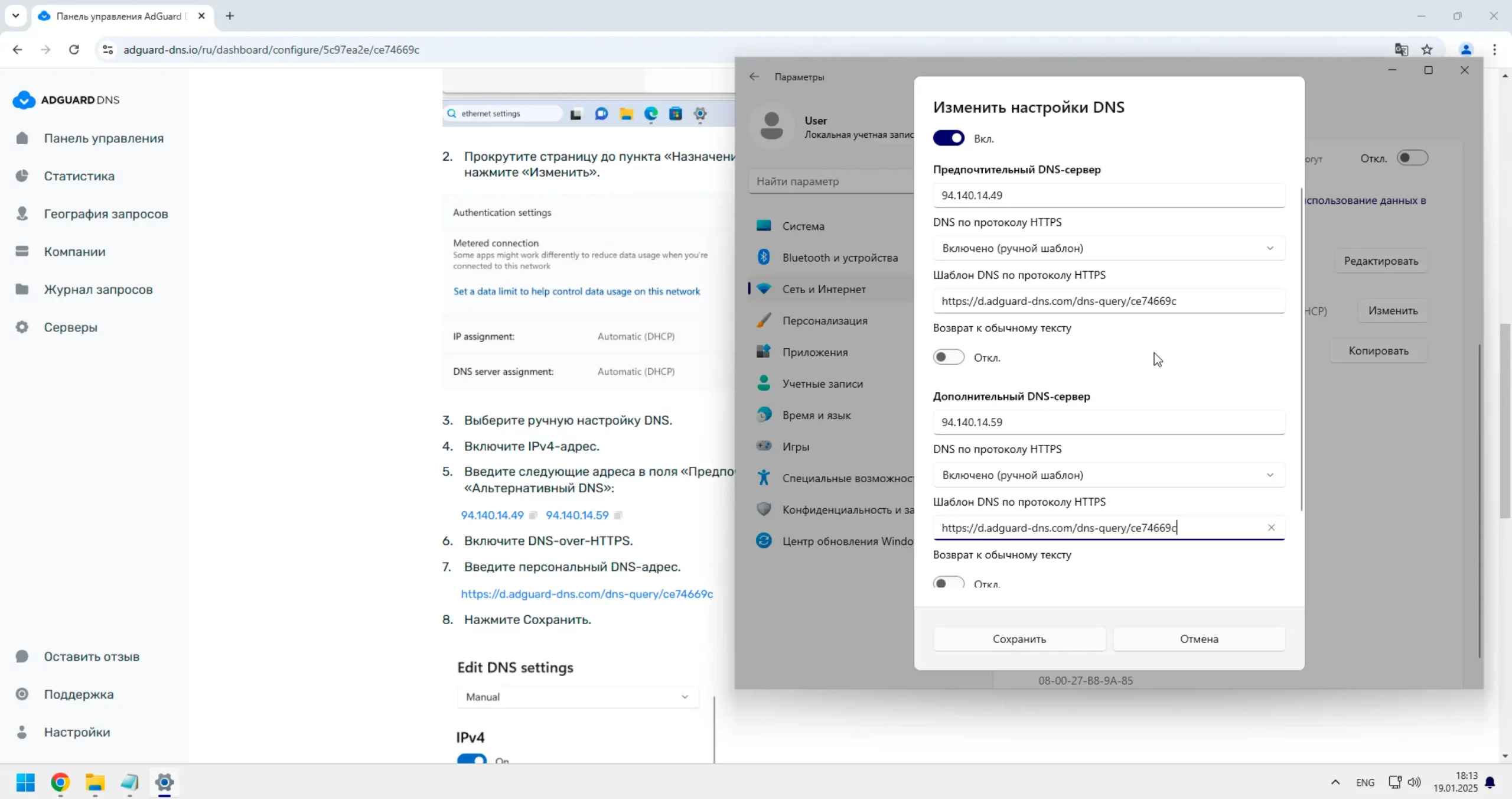 Настройка DNS-сервера на ПК (на примере AdGuard)