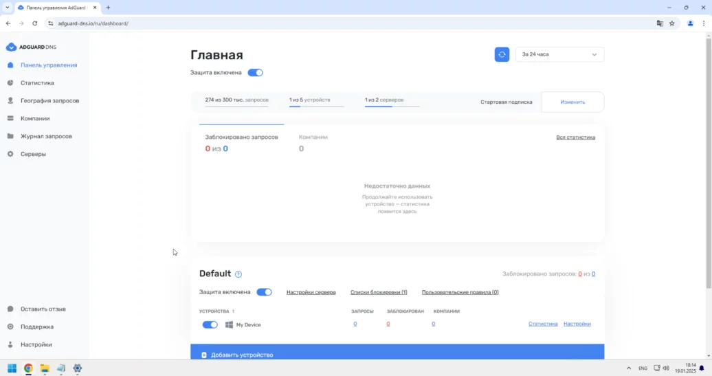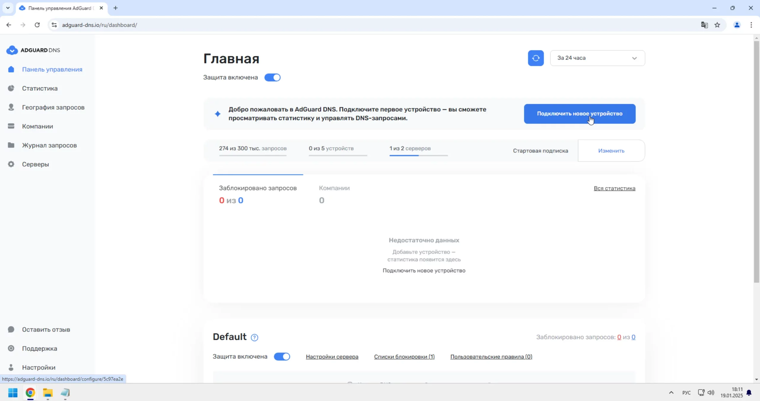 2. AdGuard переведет вас в личный кабинет. Нажмите «Подключить новое устройство».