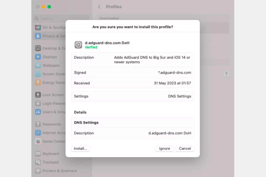 Настройка частного DNS-сервера на MacOS (на примере AdGuard)