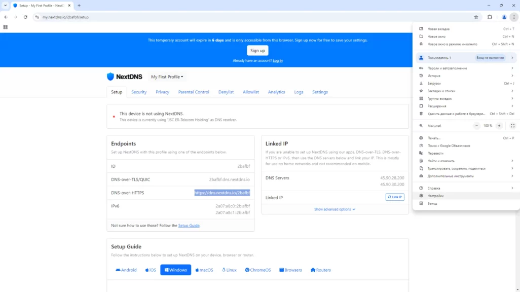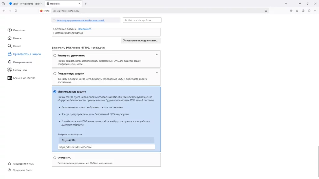Настройка частного DNS-сервера в браузере (на примере NextDNS)