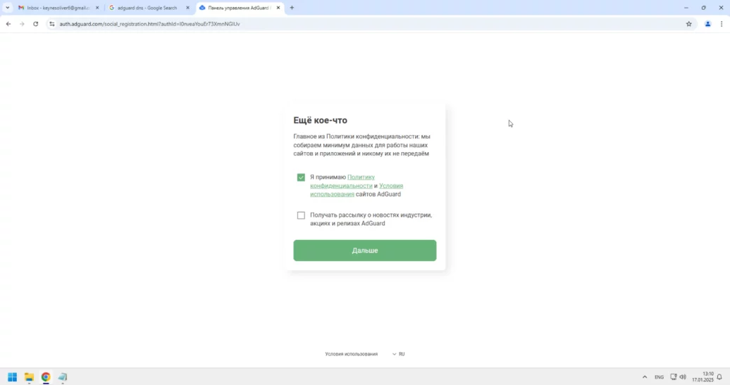 4. Нажмите в личном кабинете AdGuard «Готово, устройство подключено».