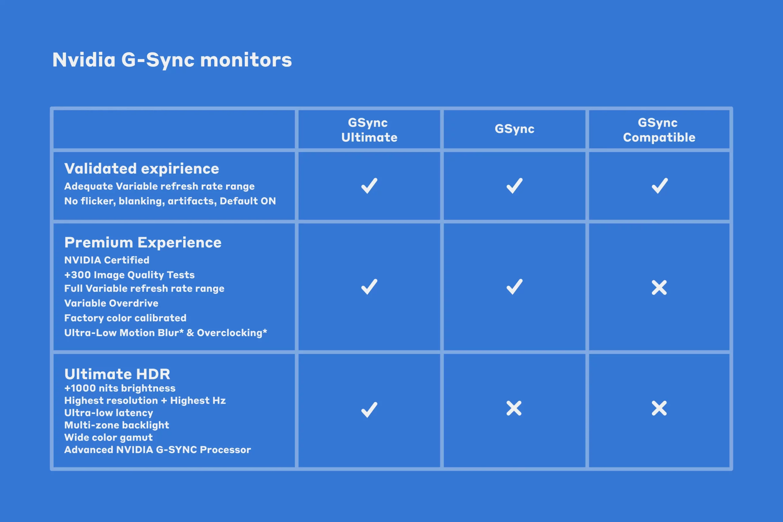 Чтобы технологии работали, необходима соответствующая поддержка со стороны монитора и видеокарты. При этом NVIDIA G-Sync с видеокартами AMD не работает, а FreeSync с видеокартами NVIDIA работает, что необходимо учитывать. У каждой технологии есть несколько уровней. У NVIDIA G-Sync это минимальный G-Sync Compatible, базовый G-Sync и расширенный G-Sync Ultimate. Последние два поддерживают HDR (расширенный цветовой диапазон) и мониторы с частотой выше 144 Гц.
