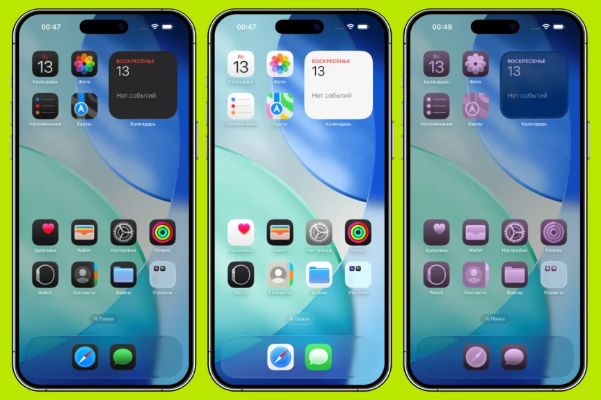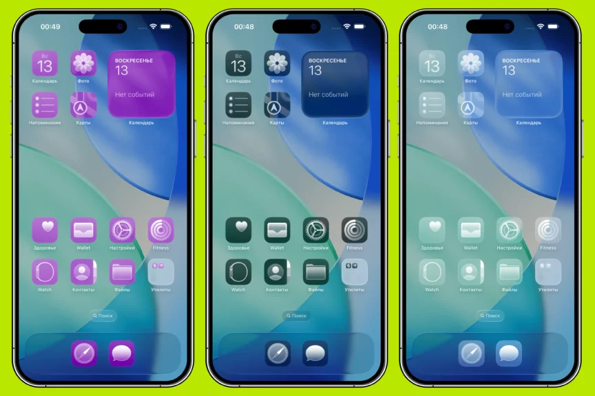 Идем дальше — а что с интерфейсом на iOS 26? Это обновление операционной системы — крупнейшее из всех со времен iOS 7 2013 года. Именно новой дизайн-концепции представители компании Apple уделили основное внимание на своей презентации. Они назвали ее Liquid Glass («Жидкое стекло»). Главная особенность — визуальный стиль, имитирующий поведение настоящего стекла: интерфейс полупрозрачный, отражает окружение, адаптируется к светлой и темной теме, а при прокрутке появляются реалистичные блики.