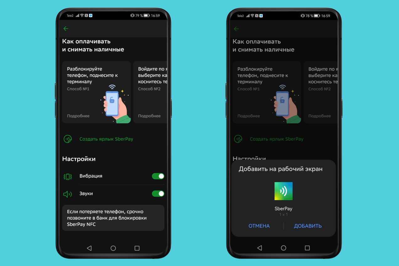 - создайте ярлык SberPay на экране смартфона;