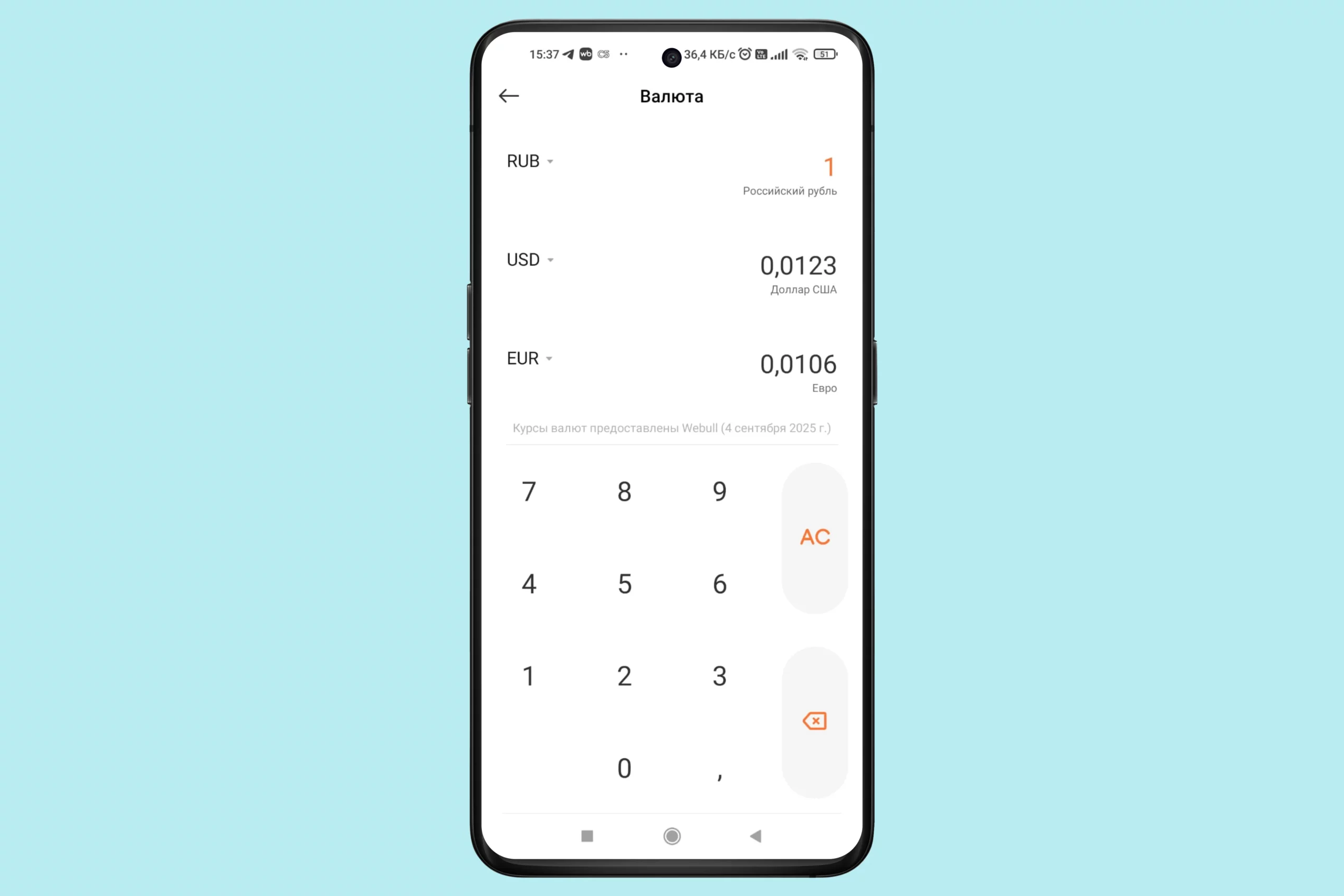 Чтобы использовать конвертер, нужно либо повернуть телефон горизонтально, либо выбрать в меню вкладку «Конвертер». Эта функция есть у многих производителей, в том числе на телефонах Samsung, Xiaomi и Google Pixel.