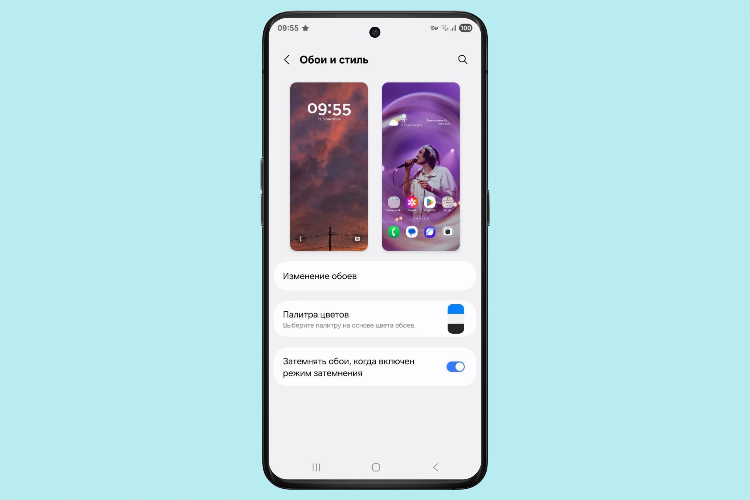 Смартфоны Samsung с One UI 4.0 и выше могут подстраивать цветовое оформление системы под картинку, которая установлена на главном экране. Если, например, у вас изображение в розовых тонах, система скорректирует цвета главного меню, меню быстрого доступа и предустановленных приложений.