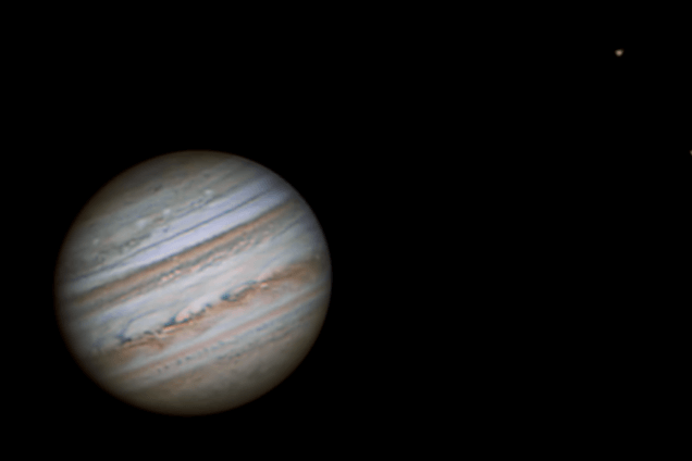 - Юпитер в бинокль виден как небольшая желтоватая горошина без деталей и подробностей на поверхности. Если условия наблюдения хорошие, можно разглядеть и четыре Галилеевых спутника в виде маленьких звездочек. Они довольно быстро вращаются вокруг планеты, поэтому в течение ночи можно зафиксировать их перемещение.