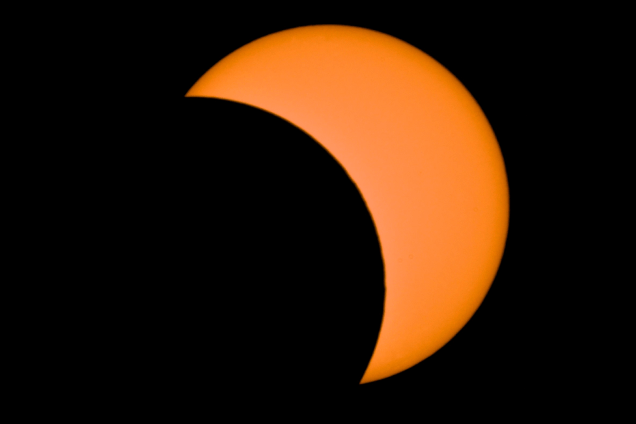Частное солнечное затмение в зеркально-линзовый телескоп 102 мм с солнечным фильтром. Снято одиночным кадром. Фото: Ярослав Горбунов